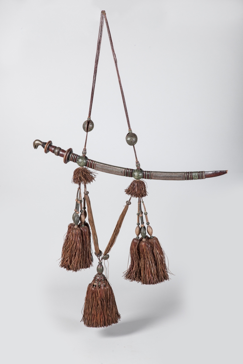 NIGER. SABRE d'apparat à ornementation de cuir tressé polychrome.