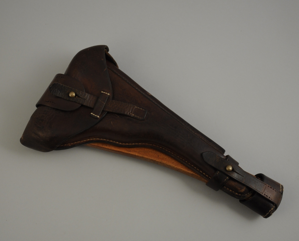 ÉTUI de LUGER P08 ARTILLERIE avec crosse en bois, clef et pièce de nettoyage.