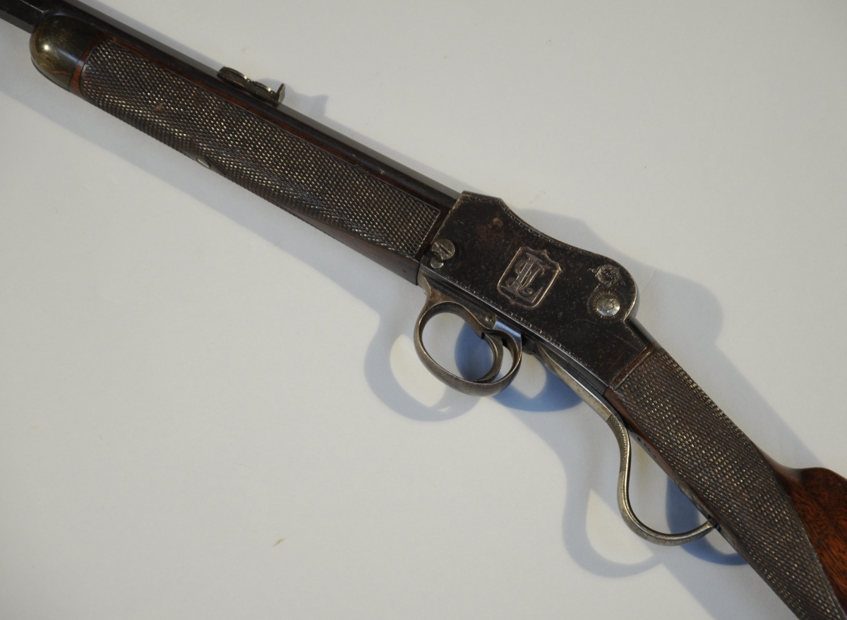 CARABINE TYPE MARTINI HENRY fabrication civile. Canon rayé à pans avec hausse signé au tonnerre "A. Bertin & Charles Jourich 97 rue Richelieu Paris".
