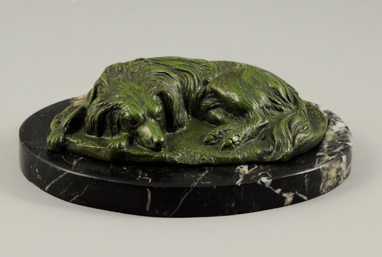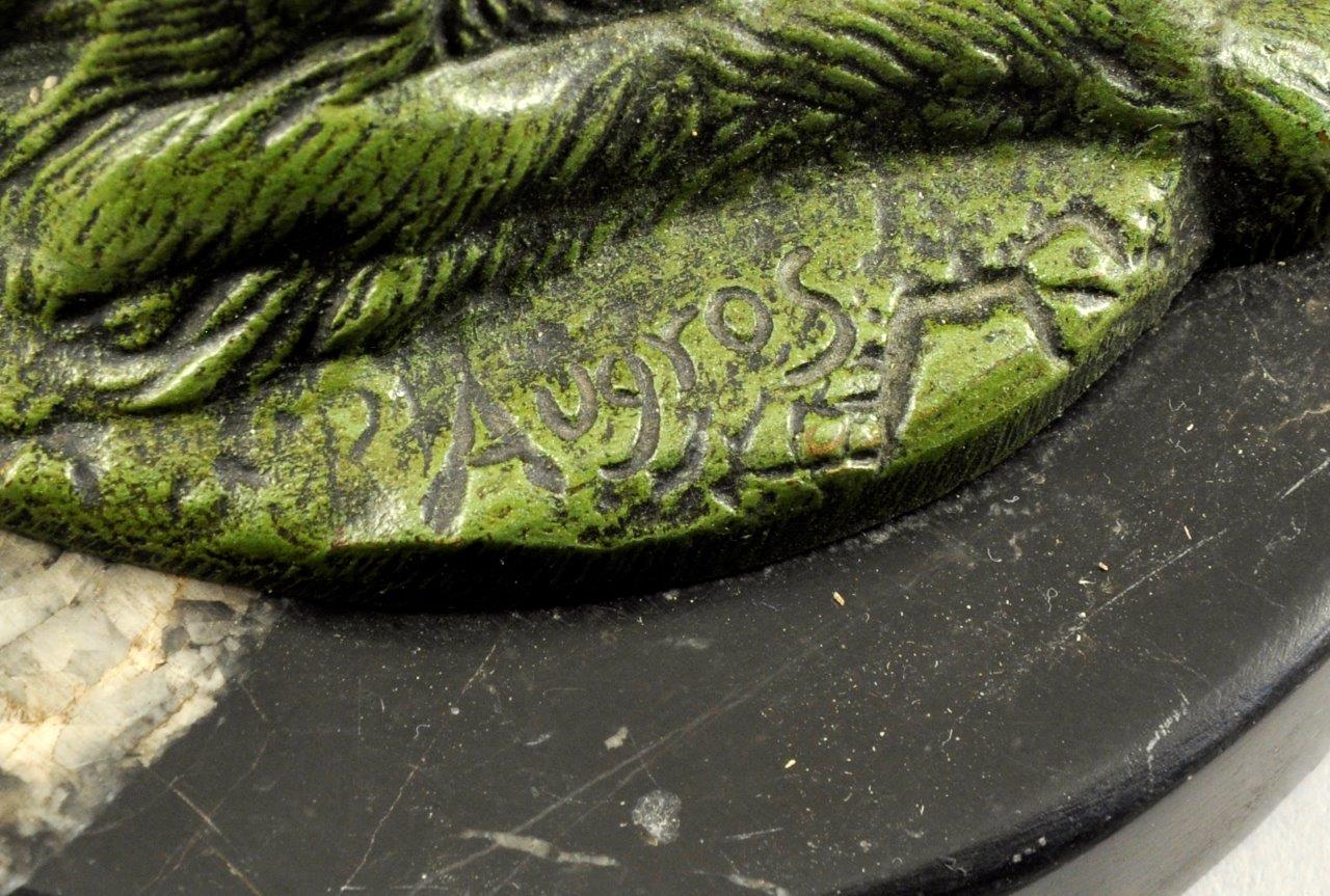 Bronze à patine verte, signé sur la terrasse. Socle de marbre gris Sainte-Anne (restauré).