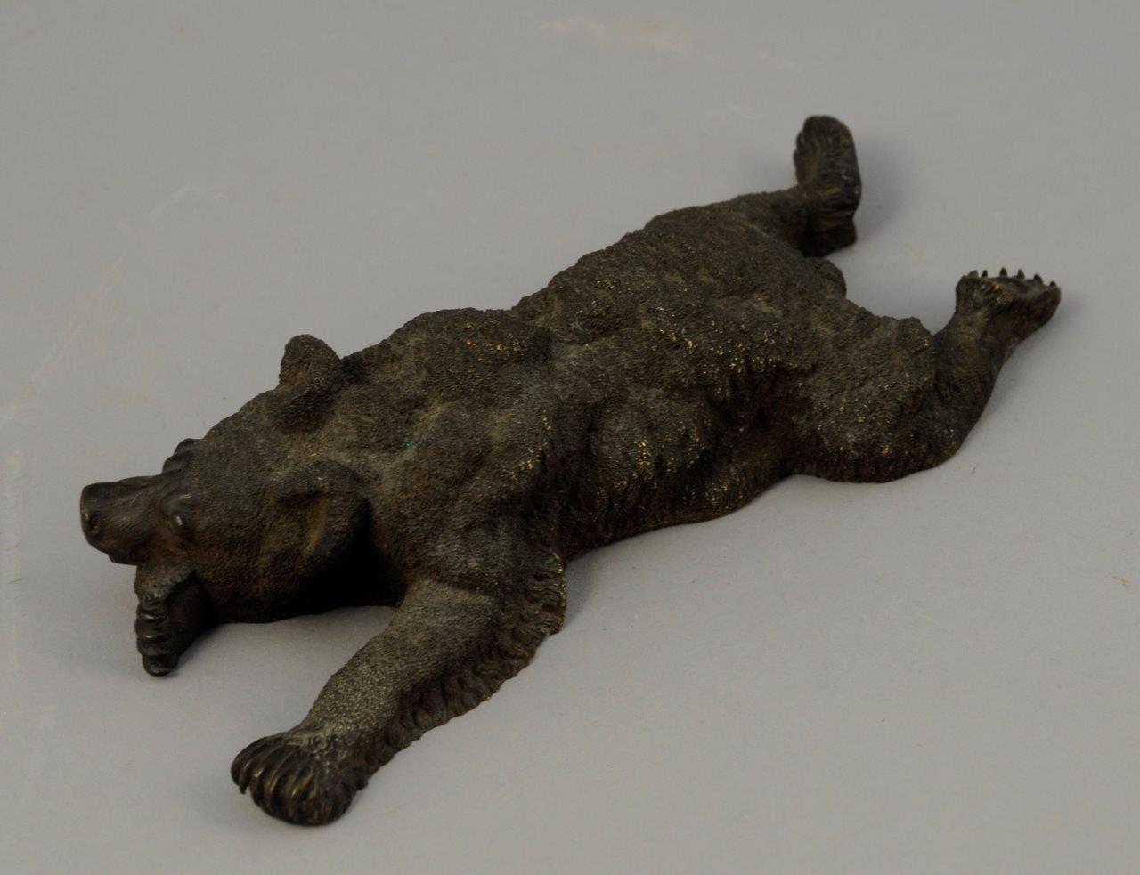 PRESSE-PAPIER adoptant la forme d'un ours étendu.