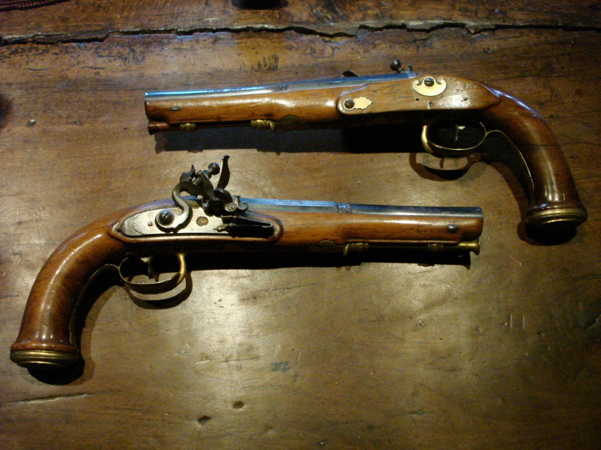 PAIRE DE PISTOLETS À SILEX D'OFFICIER.