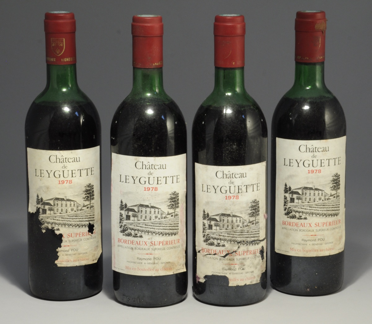 BORDEAUX SUPÉRIEUR - Château de Leyguette - 1978 - 4 bouteilles.