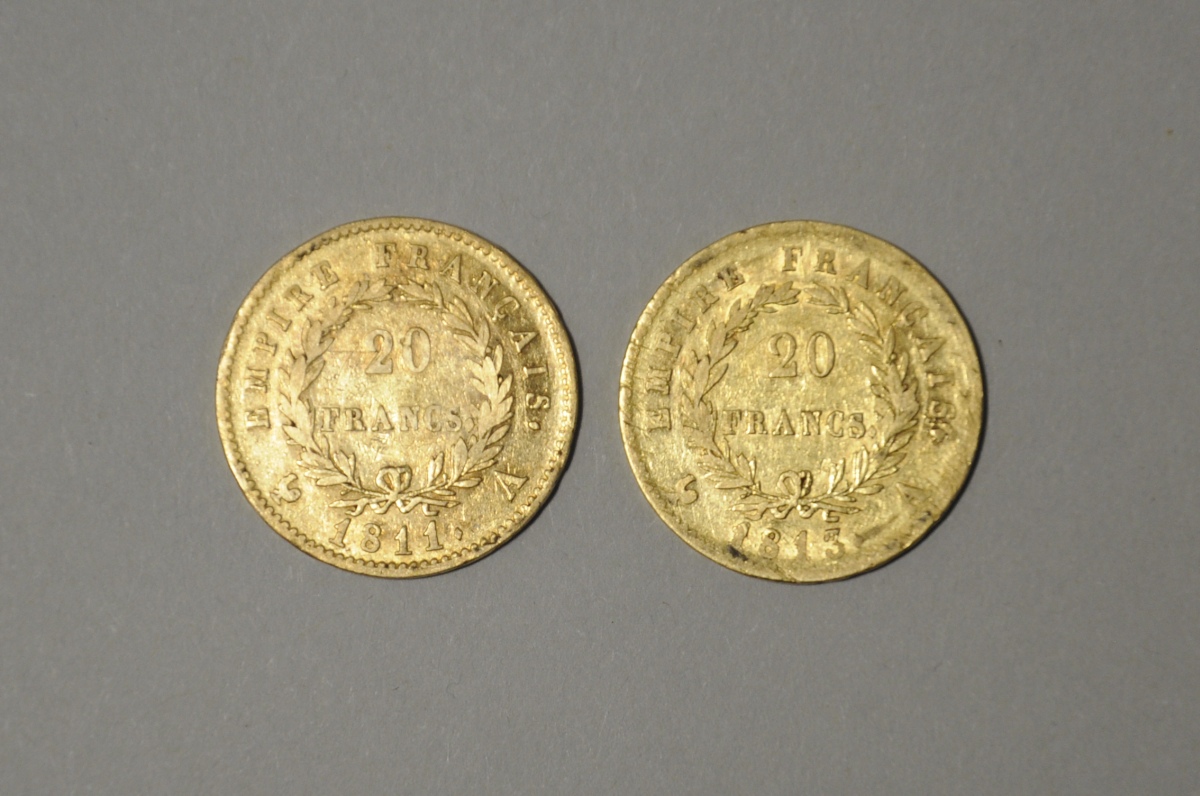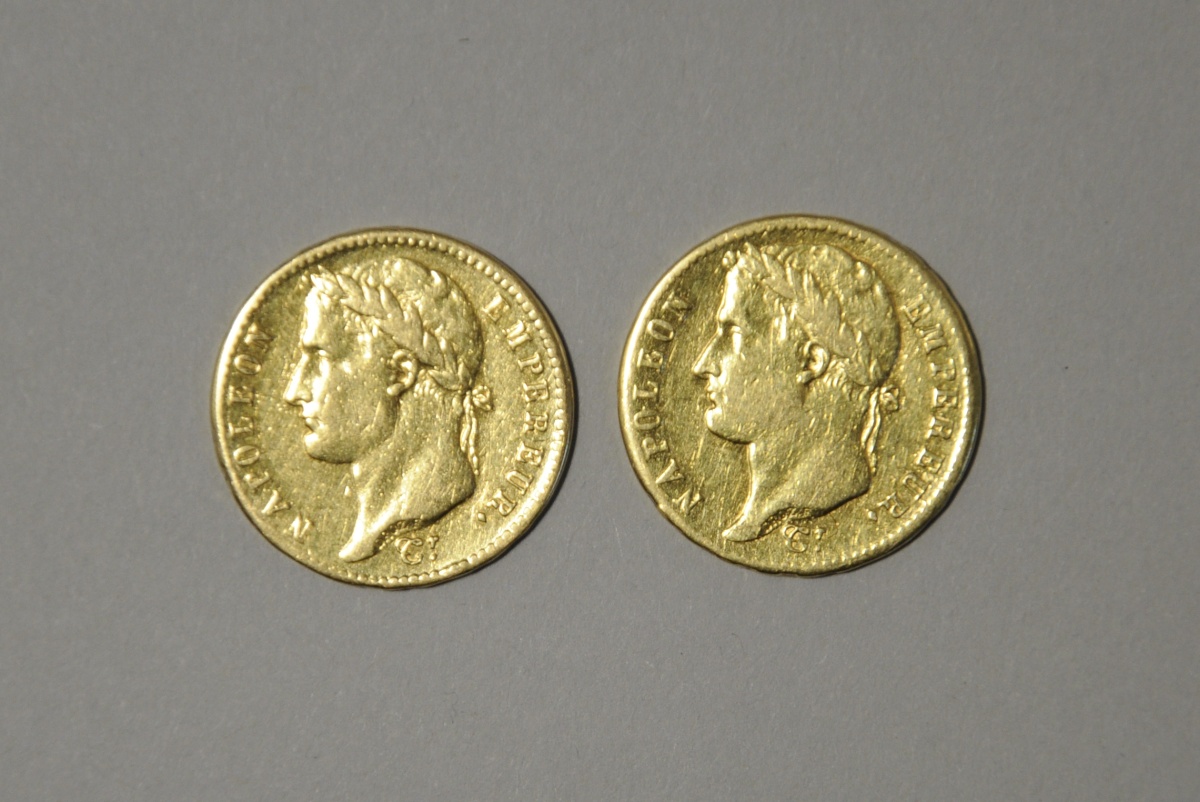 2 x 20 F or, Napoléon Empereur (Ier) lauré, 1811.