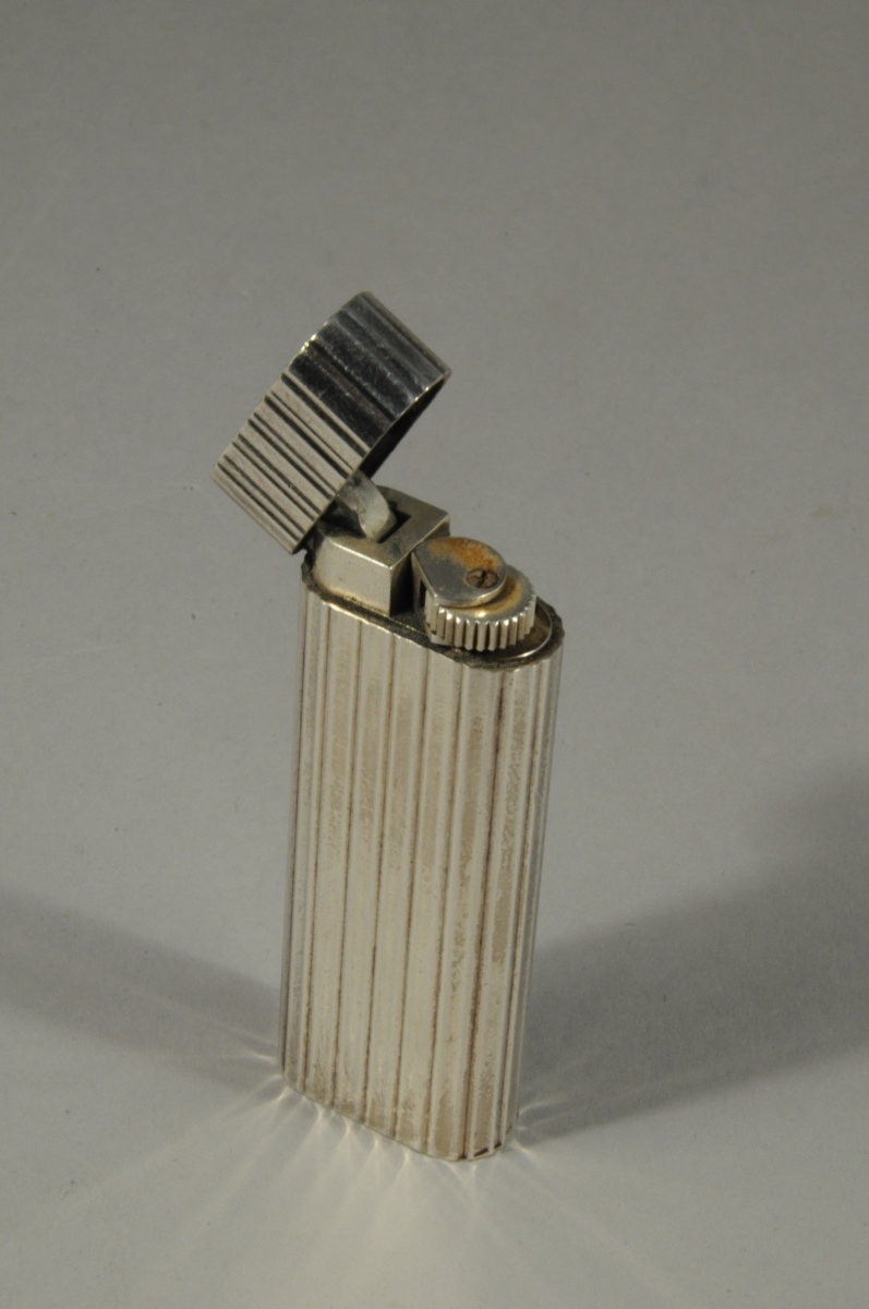 CARTIER. BRIQUET de forme rectangulaire en métal argenté orné de cannelures.
