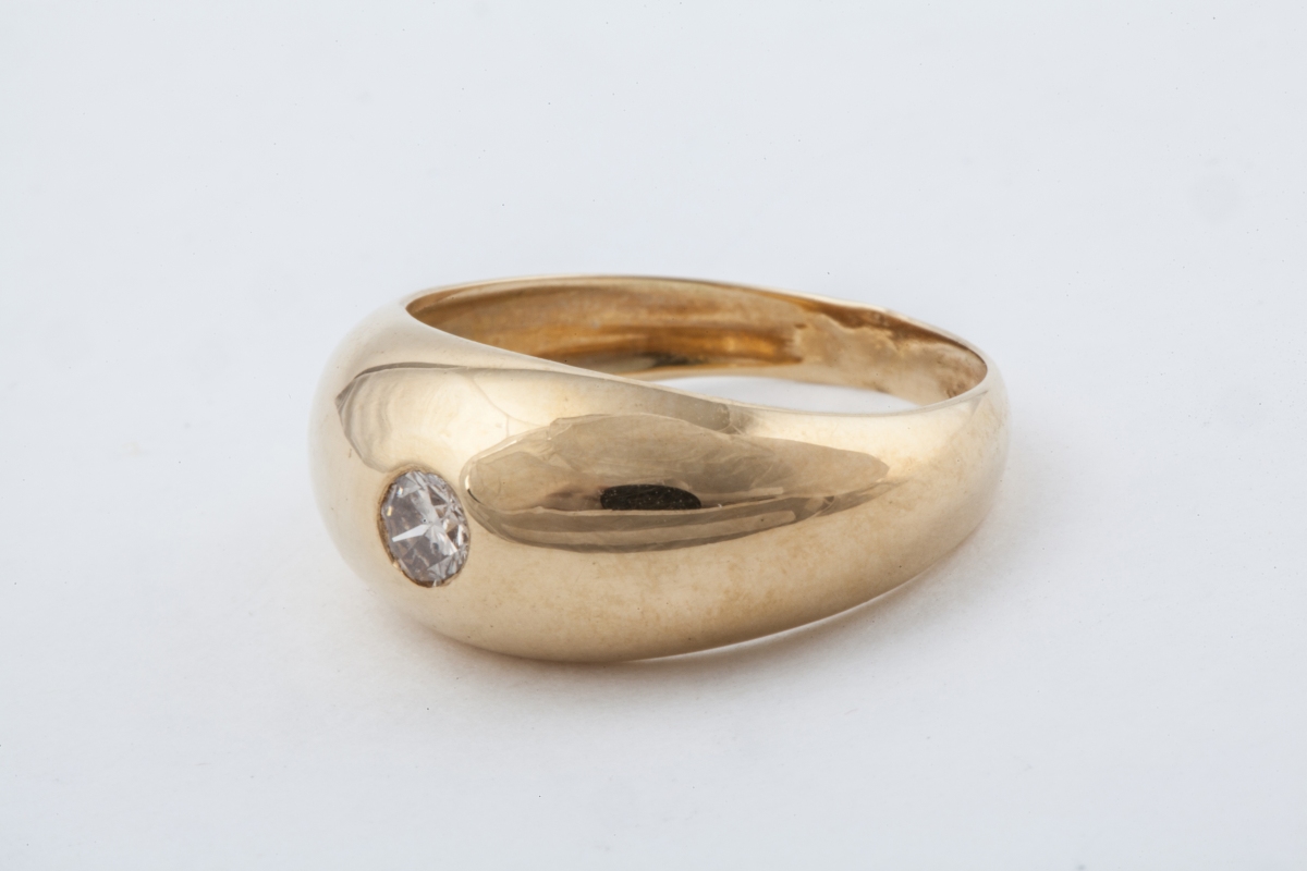 BAGUE jonc en or jaune sertie d'un petit brillant.