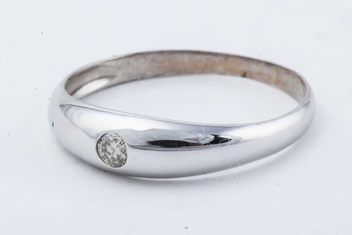 BAGUE jonc en or gris sertie d'un petit brillant.
