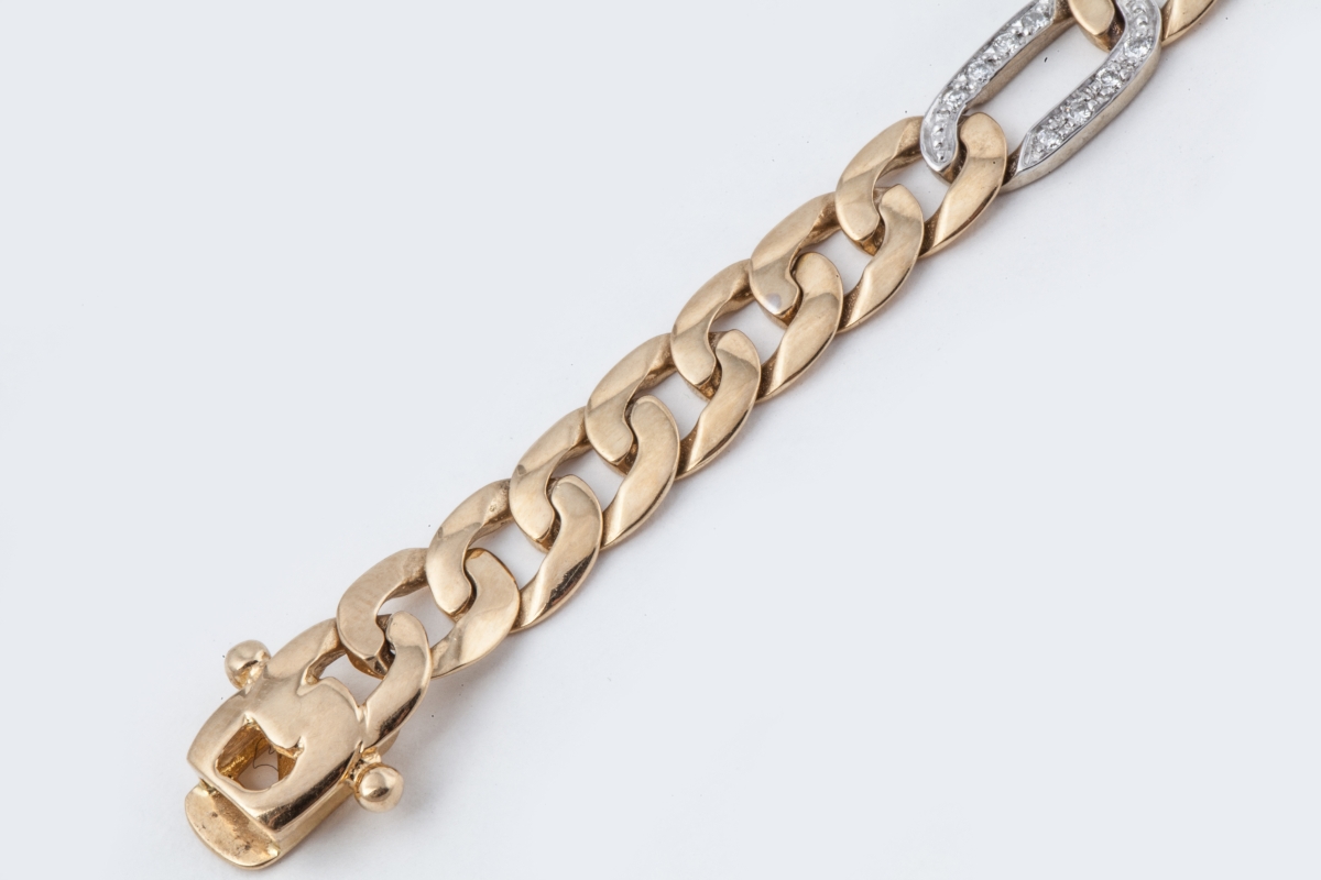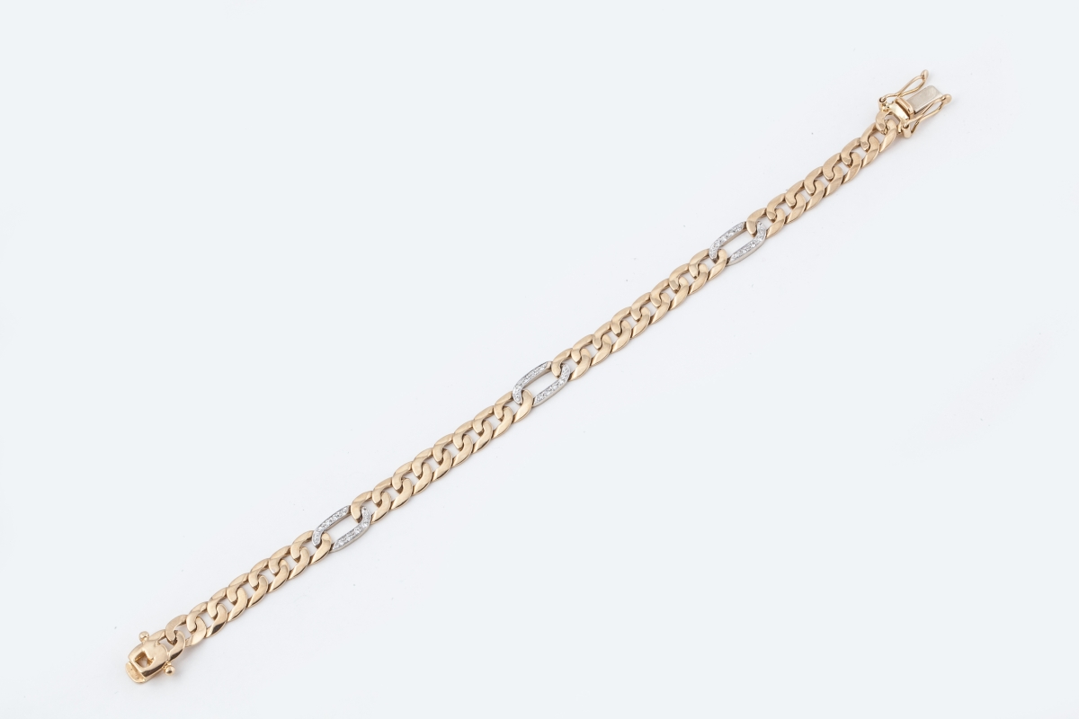 BRACELET articulé en or jaune, partiellement serti de petits diamants.