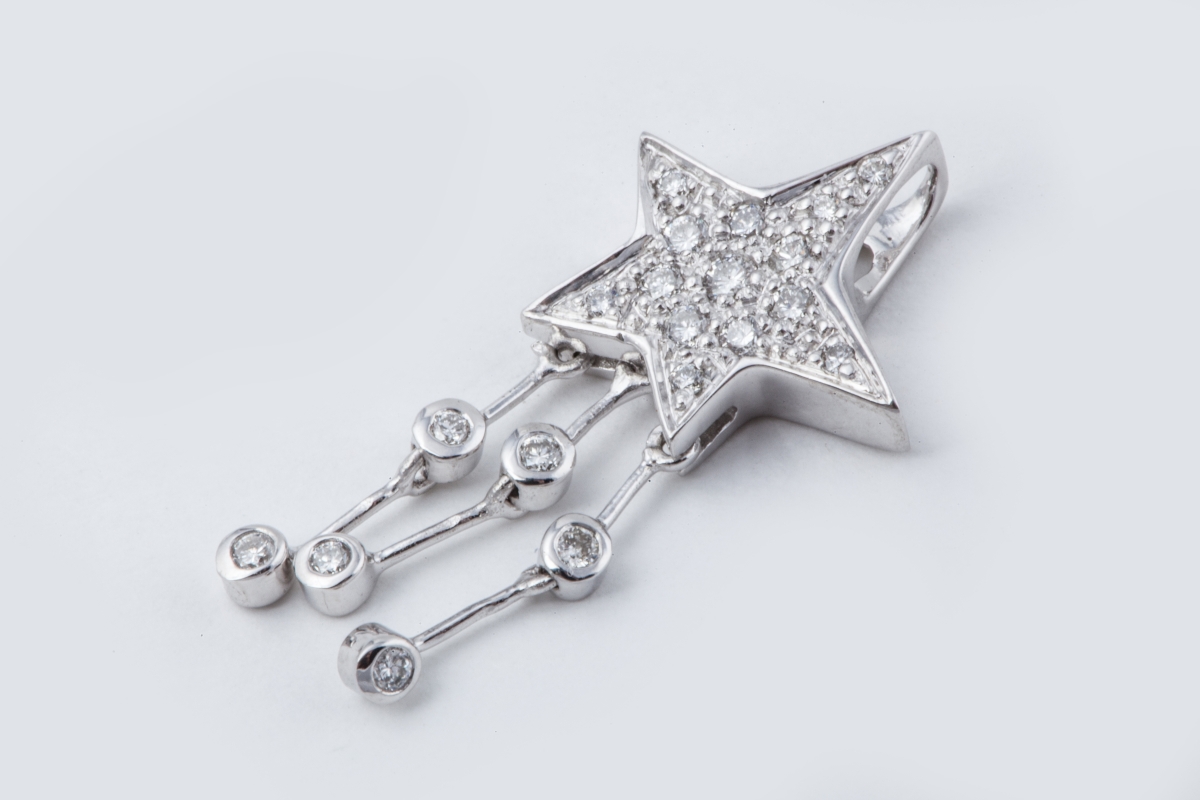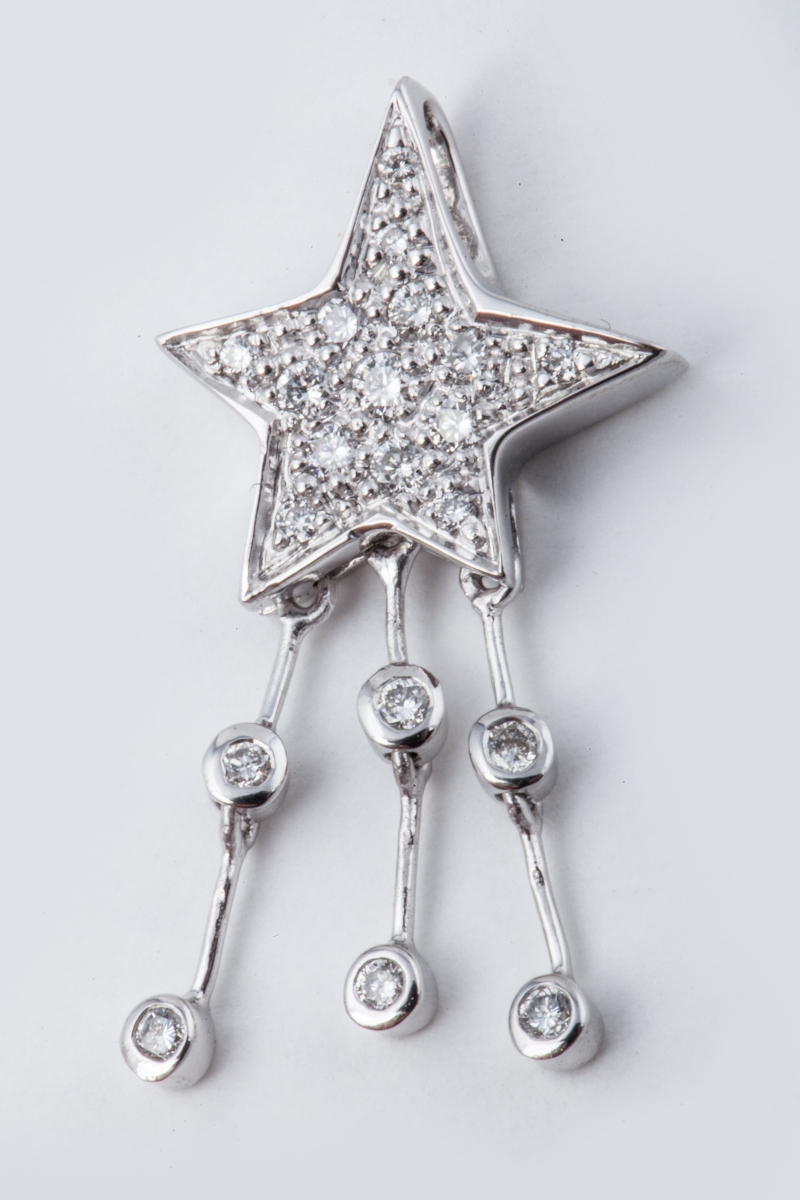 PENDENTIF "étoile" en or gris, serti de diamants.