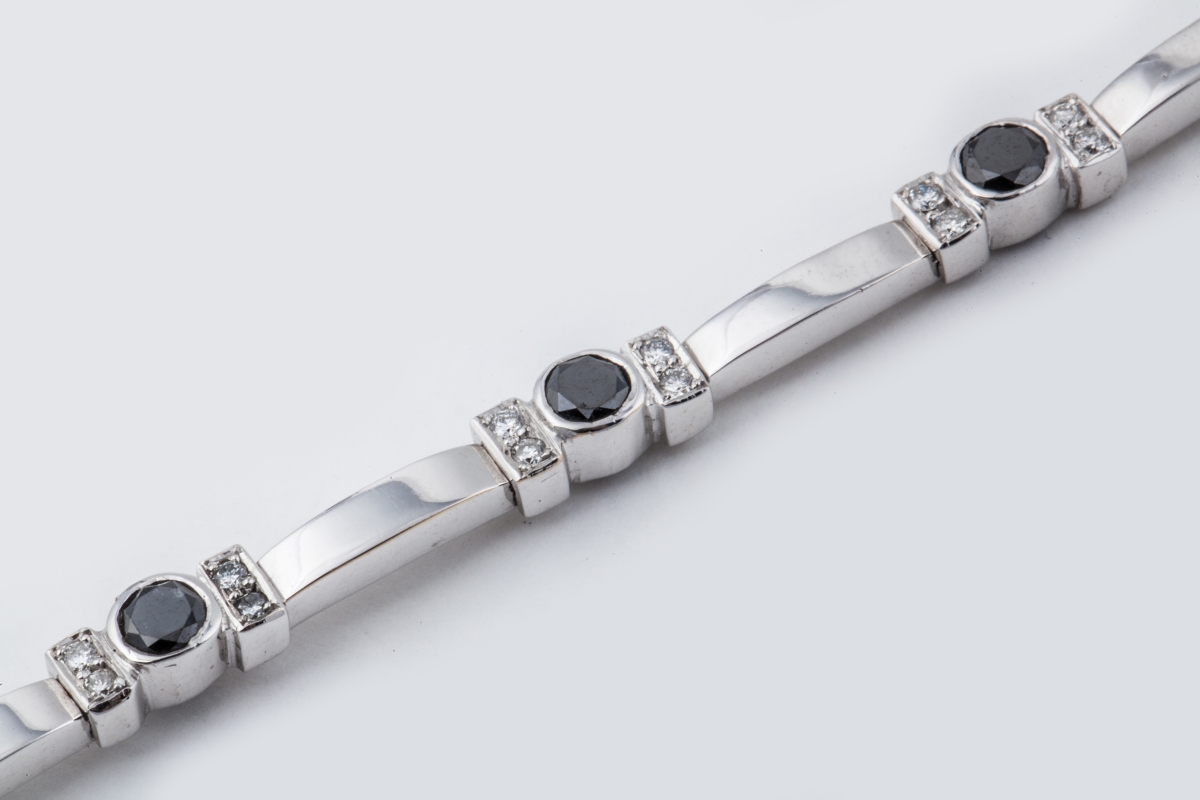 BRACELET articulé en or gris, les maillons rectangulaires partiellement sertis de diamants.