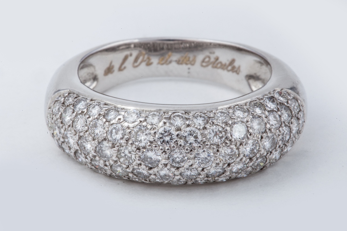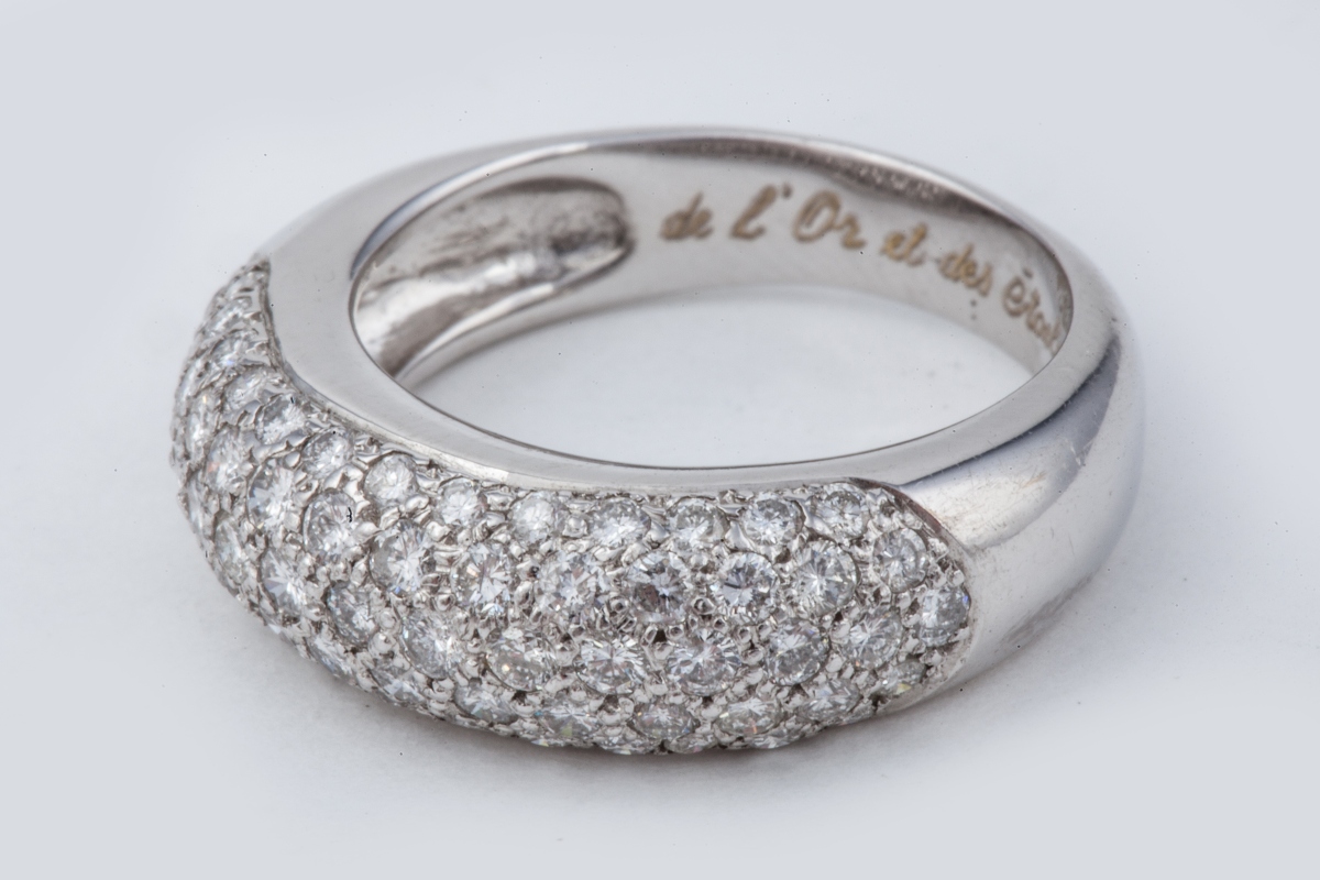 BAGUE jonc en or gris, ornée d'un petit pavage de brillants.