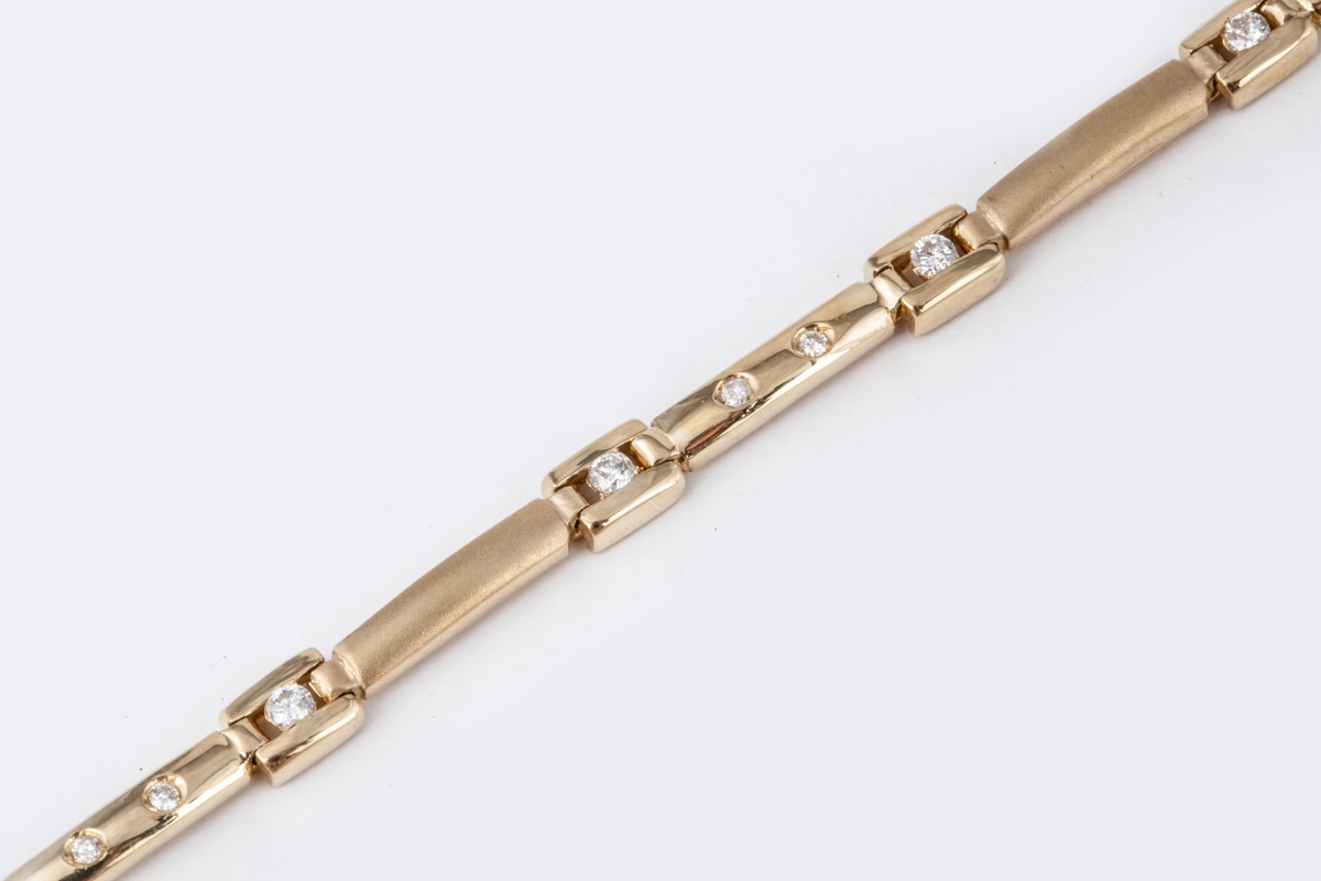 BRACELET articulé en or jaune partiellement serti de diamants.