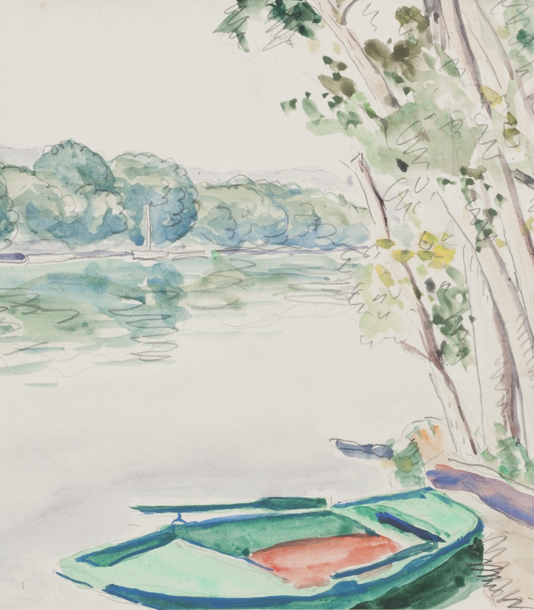 Albert MARQUET. Boat on the Seine at Poissy. Pencil and watercolor. Signed and dated 1929 lower left.