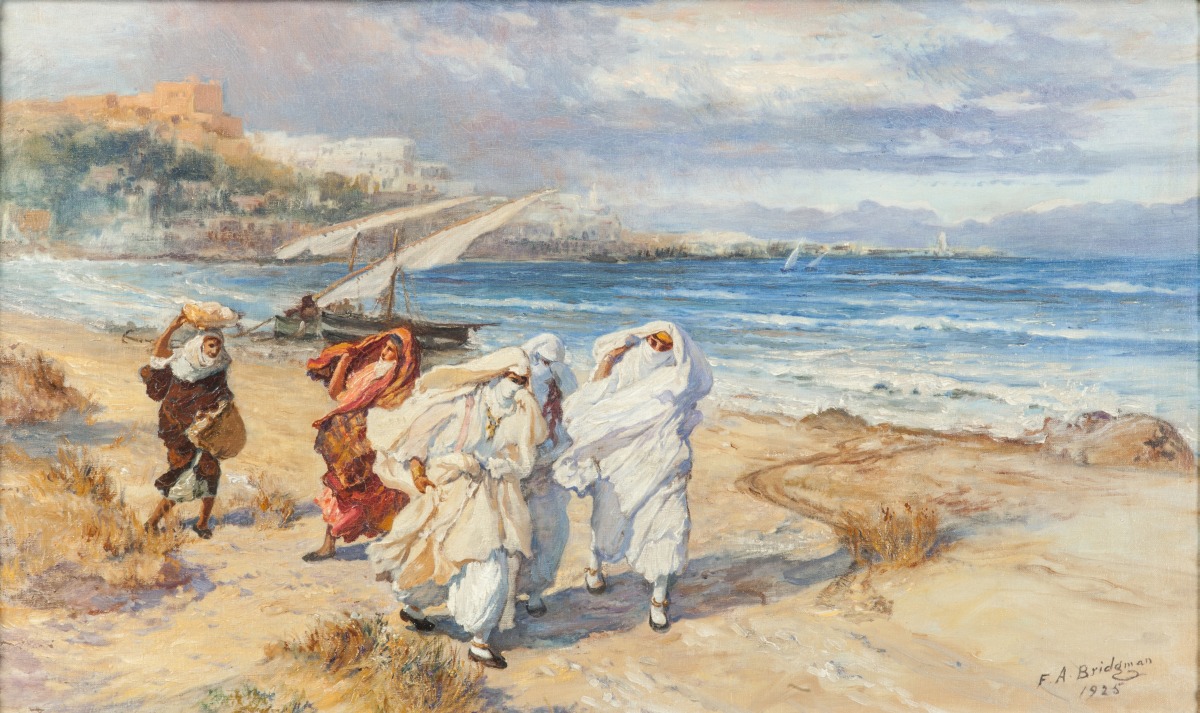 Frederick Arthur BRIDGMAN. Women at the shore, village in the horizon. Canvas signed lower right and dated 1925.