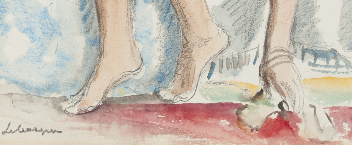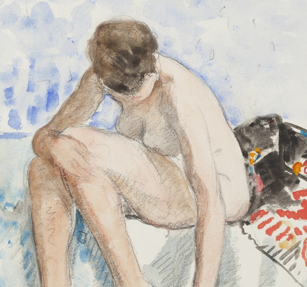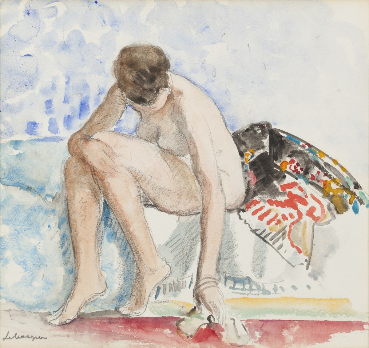 Henri LEBASQUE. Feminine nude. Pencil and watercolor. Signed lower left.