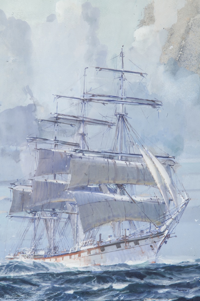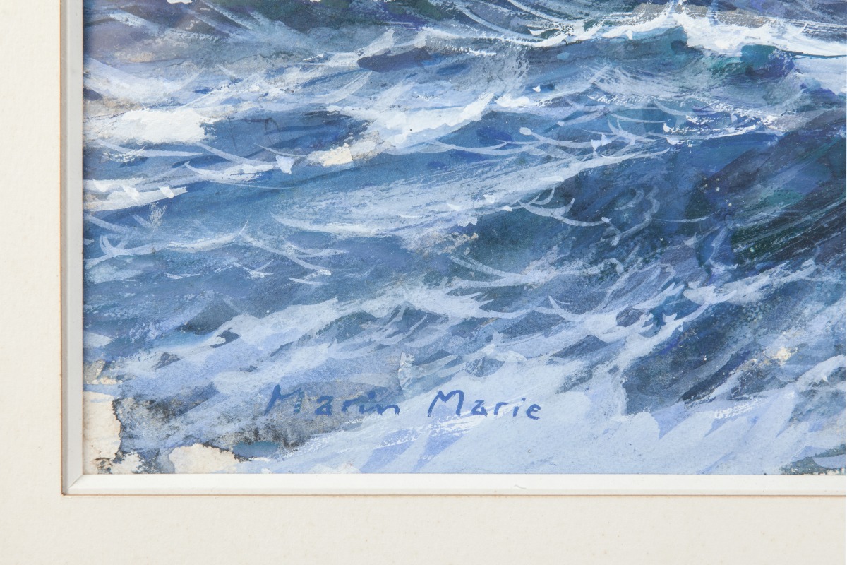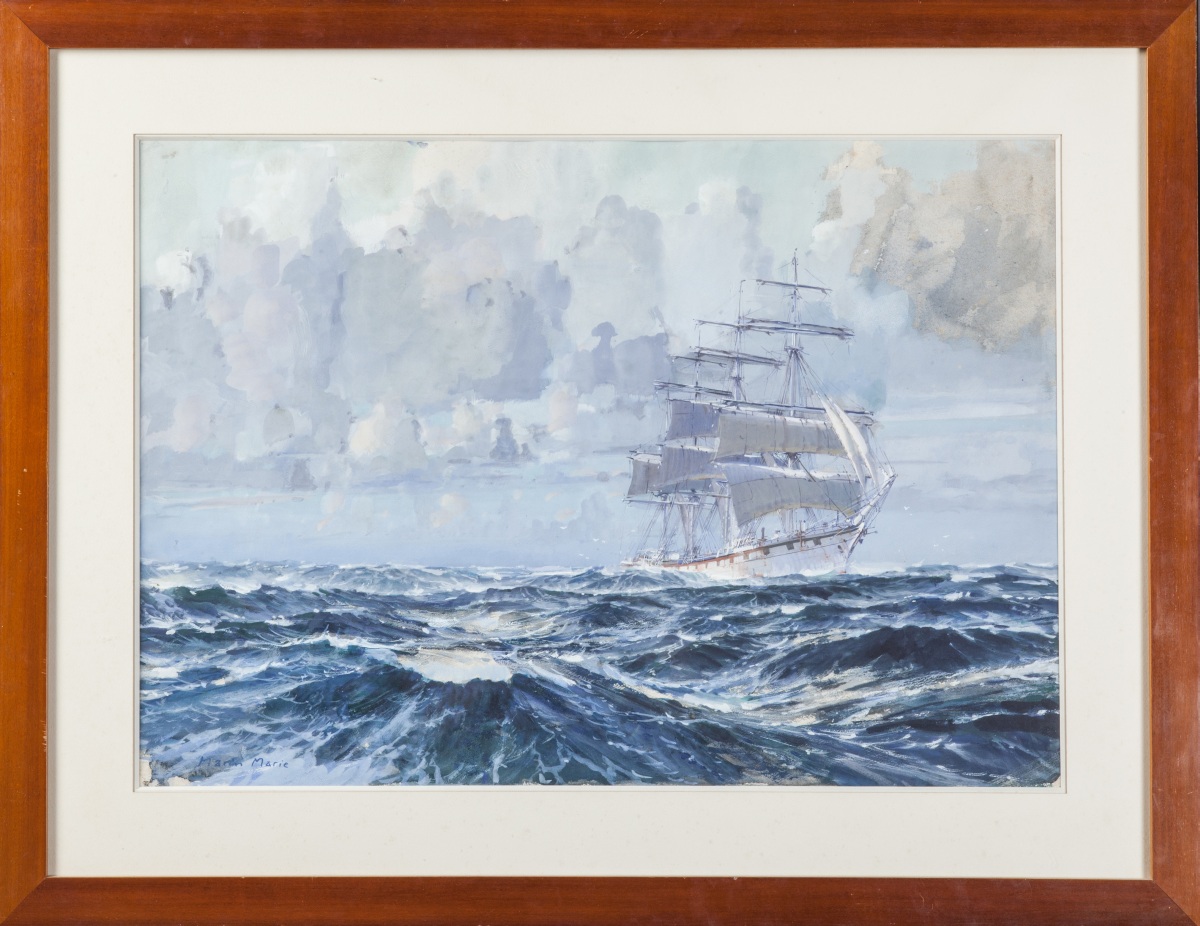 MARIN-MARIE. Three masts at sea. Gouache signed lower left.