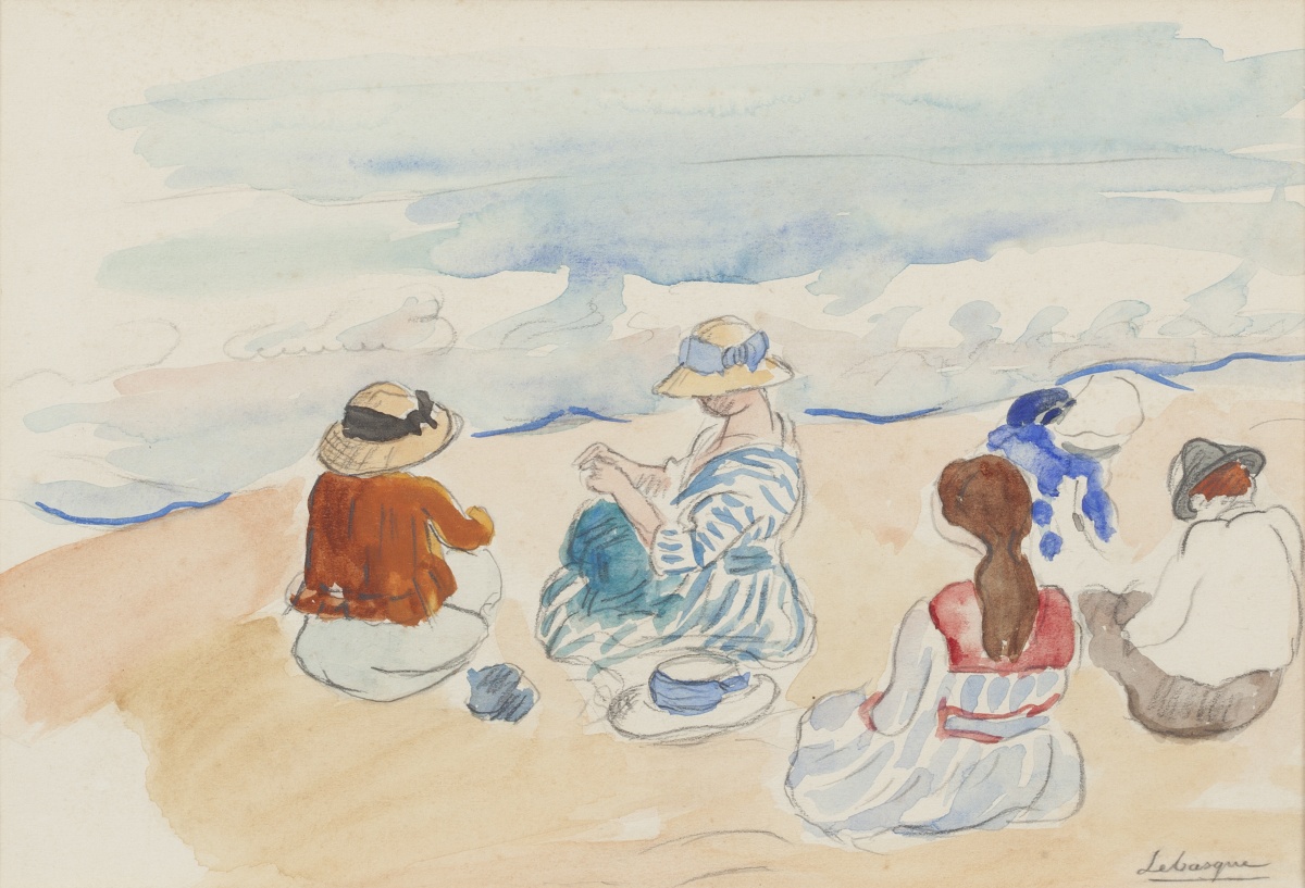 Henri LEBASQUE. At the beach. Pencil and watercolor. Signed lower right.