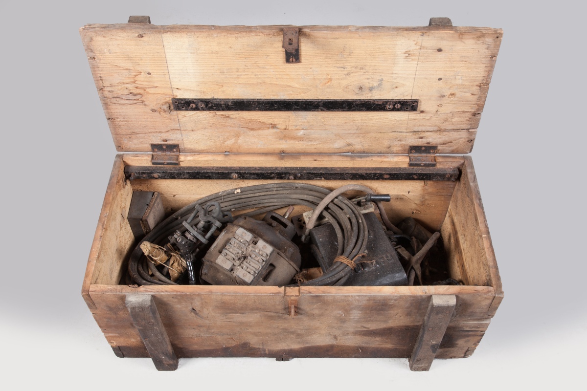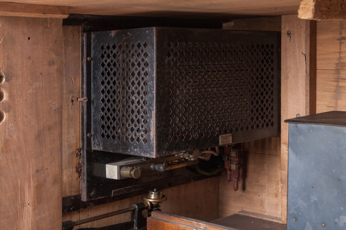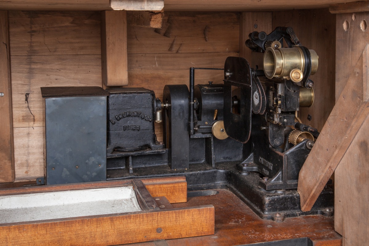 Appareil de cinéma parlant avec diffusion de son amplifié, contenu dans quatre caisses :