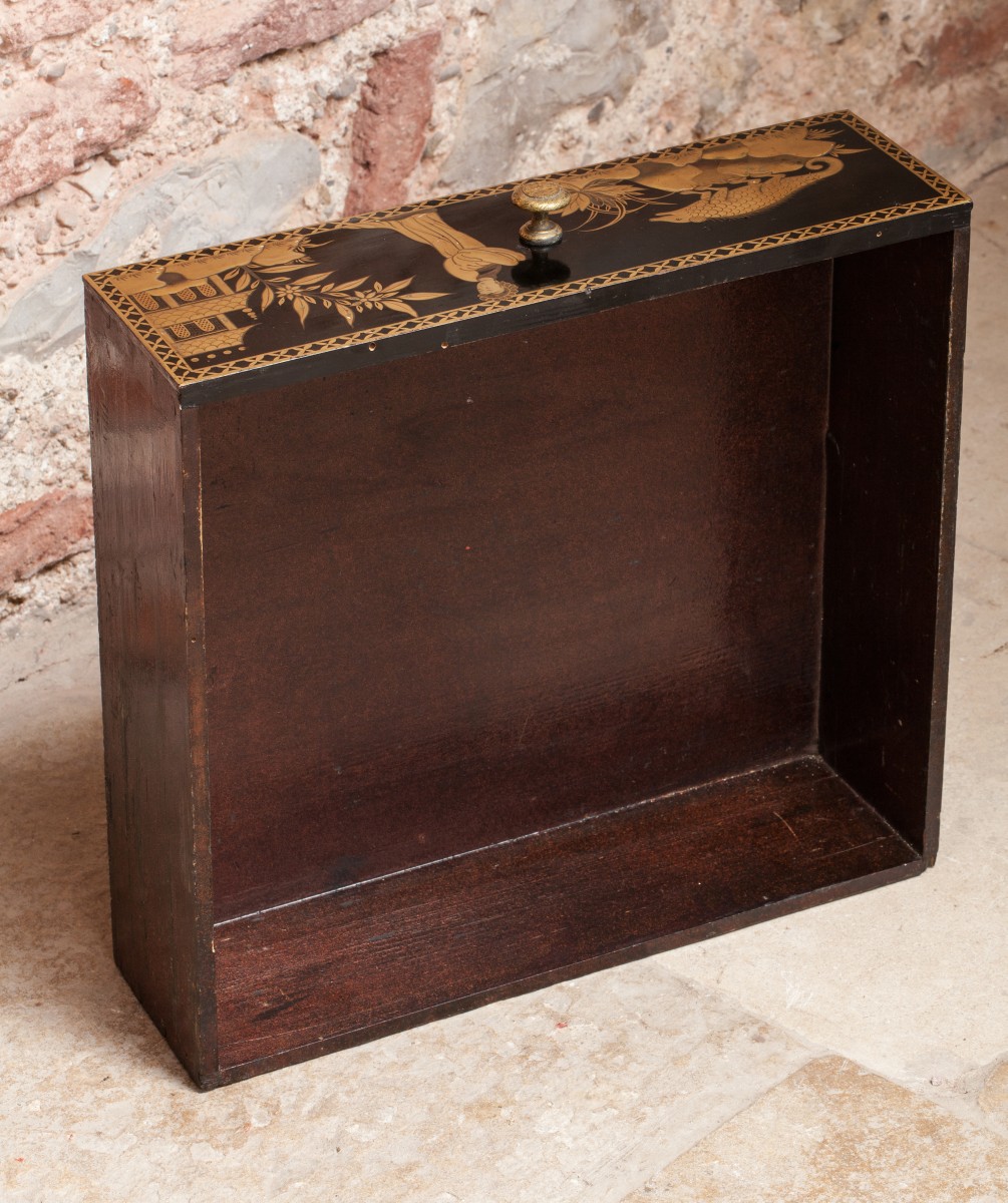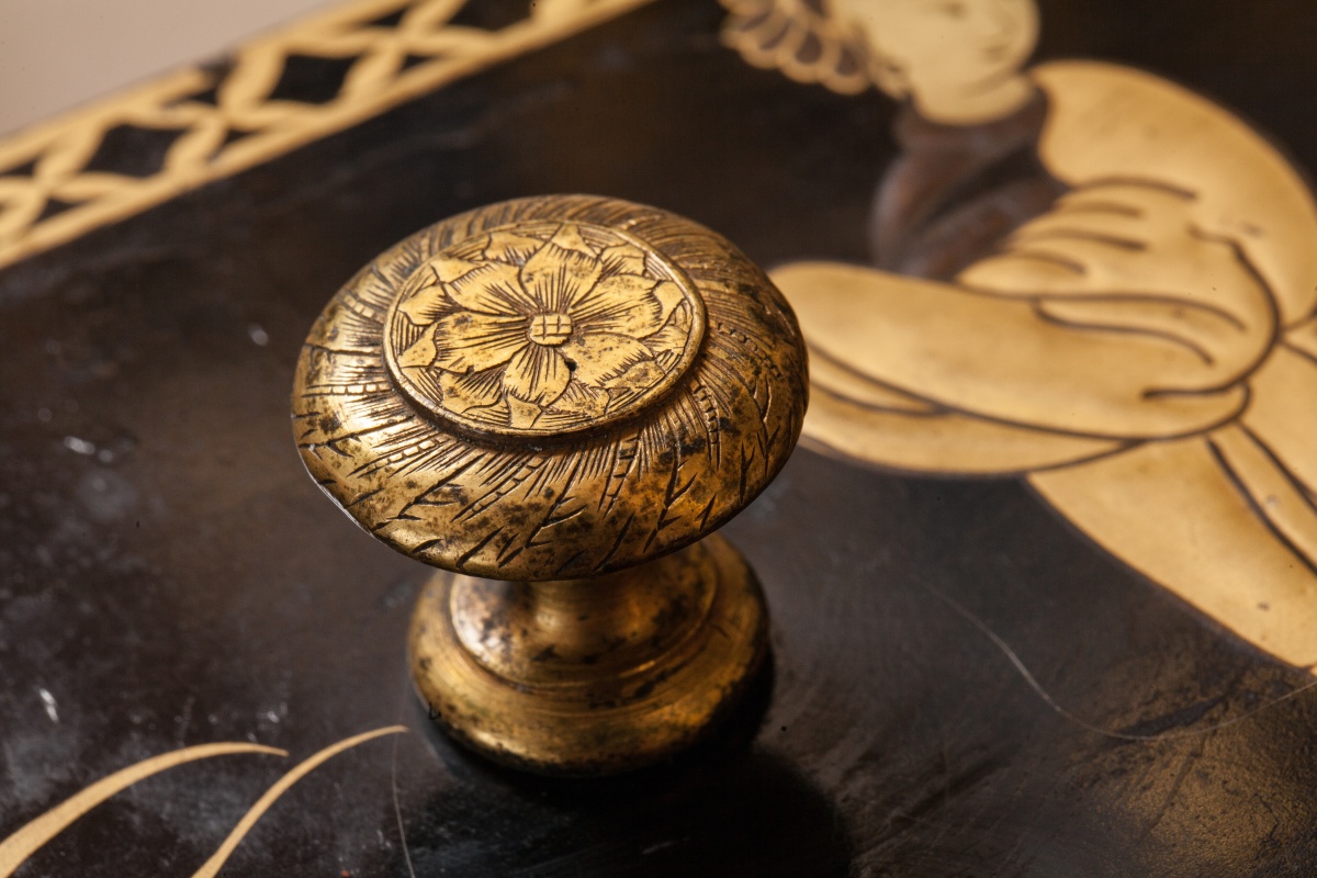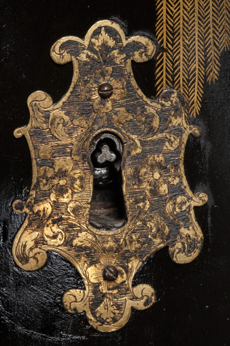 Grand CABINET EN LAQUE à motifs or sur fond noir,...