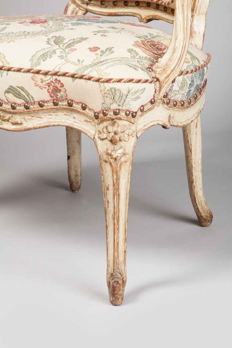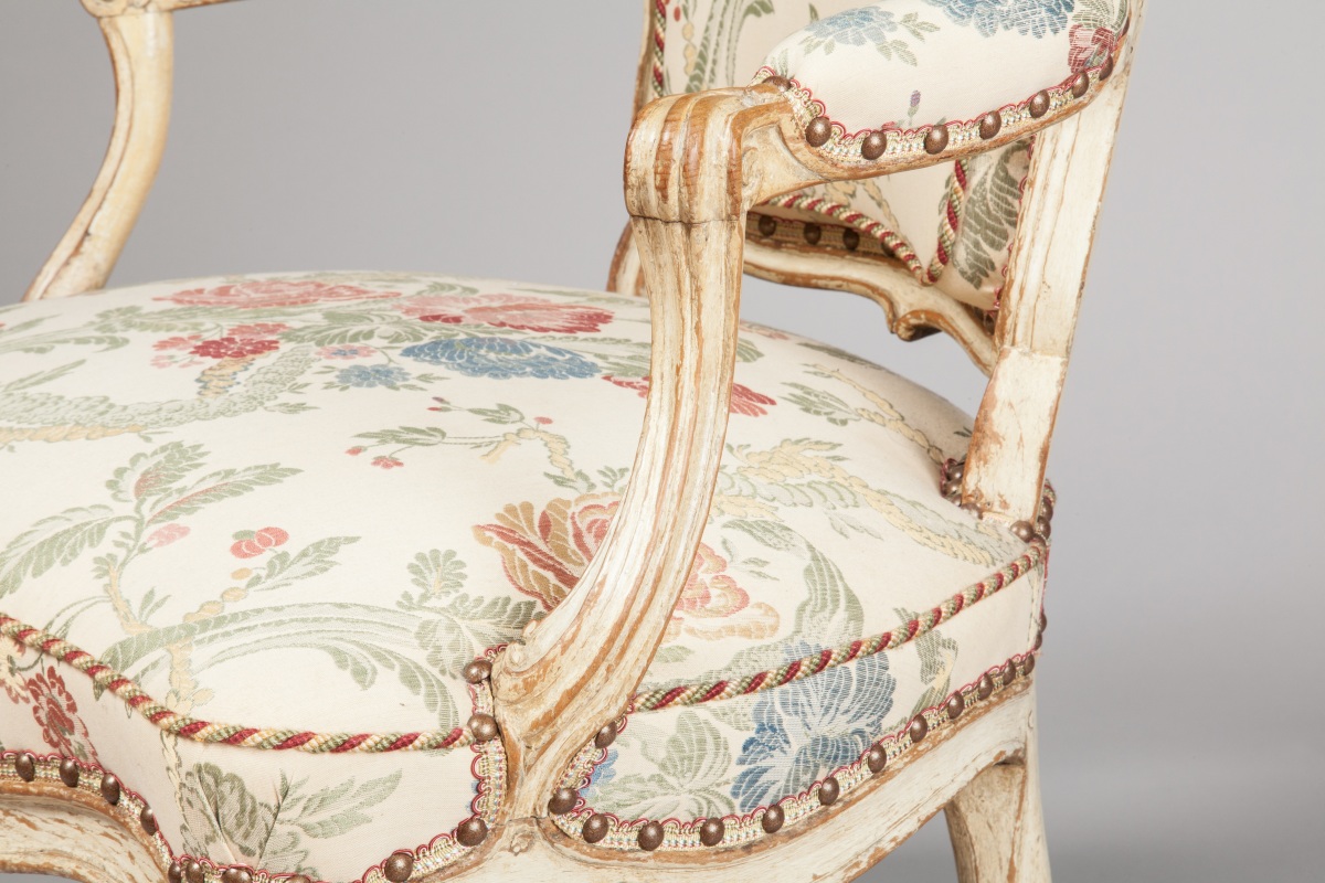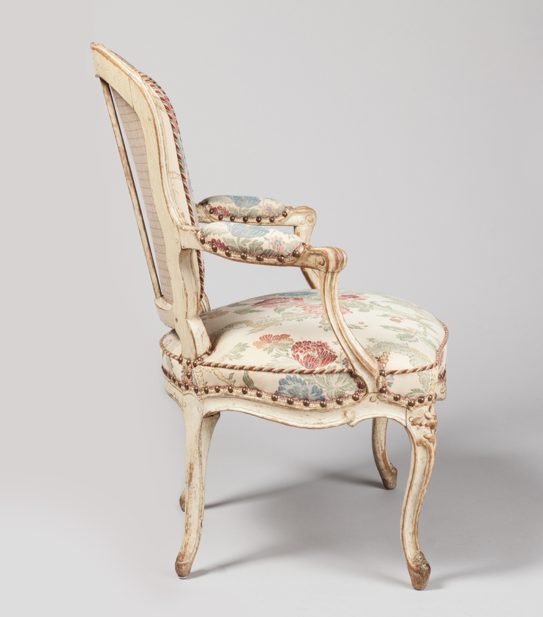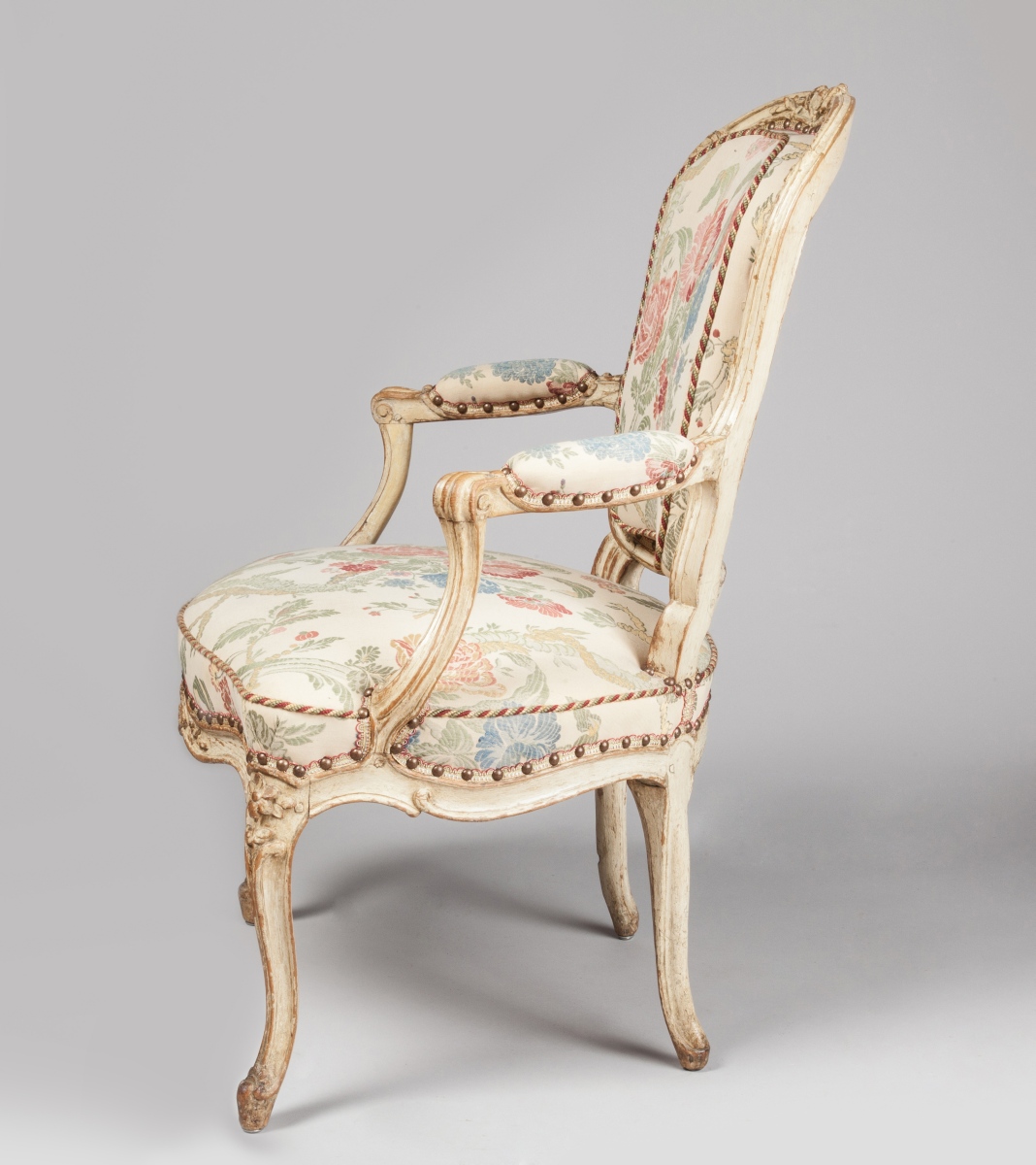 La traverse inférieure du dossier en accent circonflexe très étiré, comme le motif sculpté en forme de cur inscrit dans un cartouche, qui orne le sommet du dossier et le centre de la ceinture sont une double caractéristique d'une grande famille de menuisiers. Il s'agit de la signature de deux ébénistes nommés Jean-Baptiste Tillard (Père, 1686-1766 et Fils, 1723-1797). Le père est "considéré comme l'un des plus talentueux fabricants de sièges du règne de Louis XV" (Kjellberg, 1989, p. 832). Leurs uvres sont conservées à Paris au Louvre et au Musée des Arts décoratifs, comme au château de Versailles.