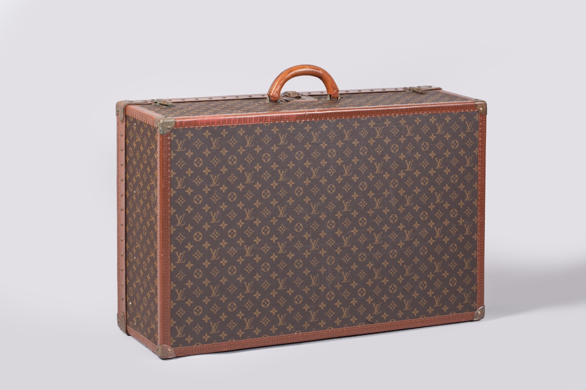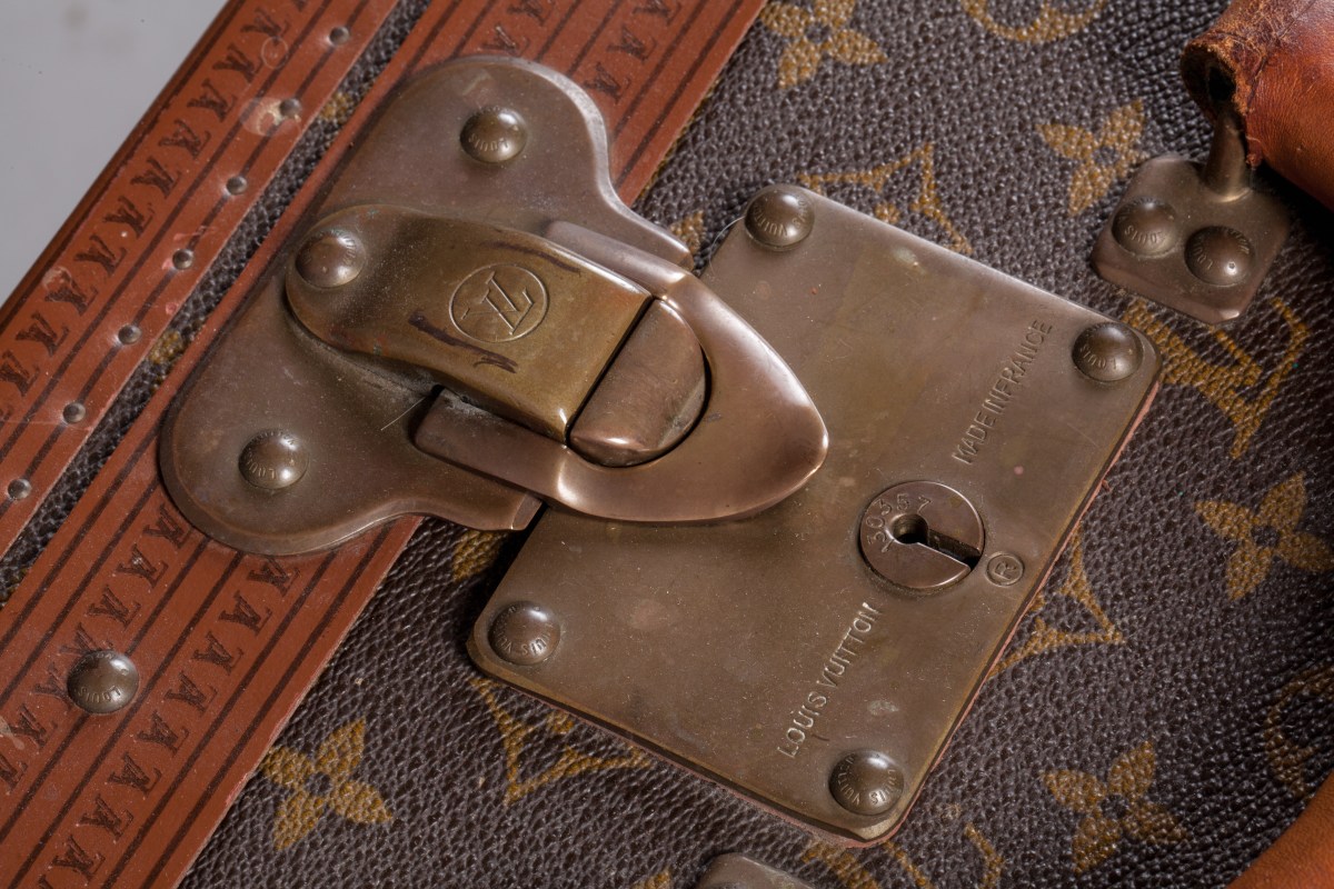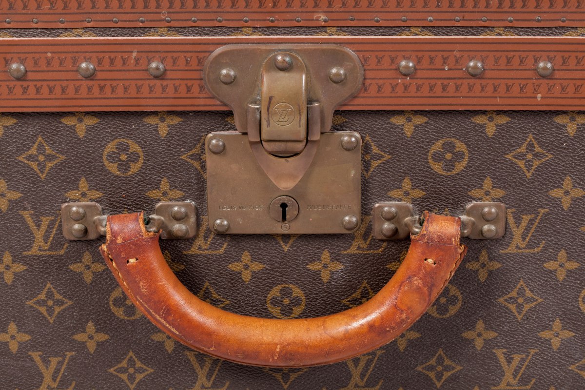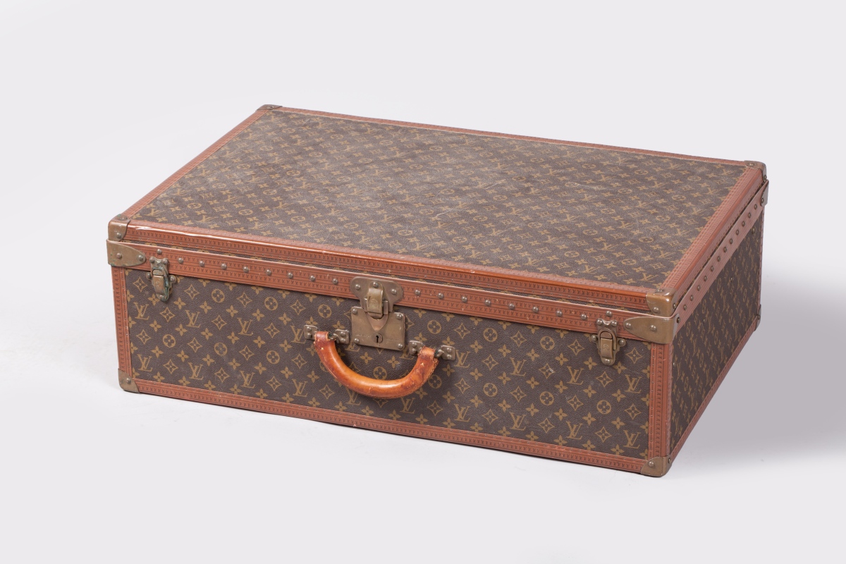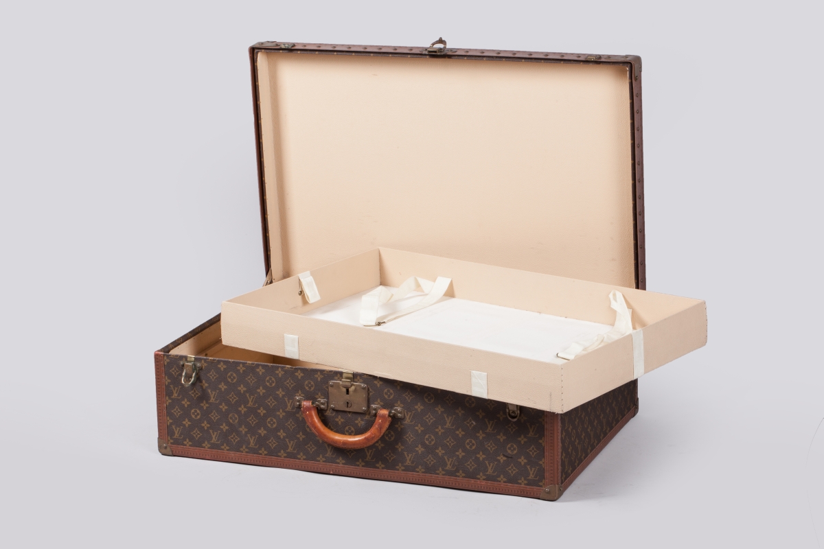 VALISE "ALZER" en toile monogrammée. Bordures lozinées, écoinçons et fermetures en laiton. Poignée en cuir. Intérieur doublé de vuittonite beige à un châssis double.