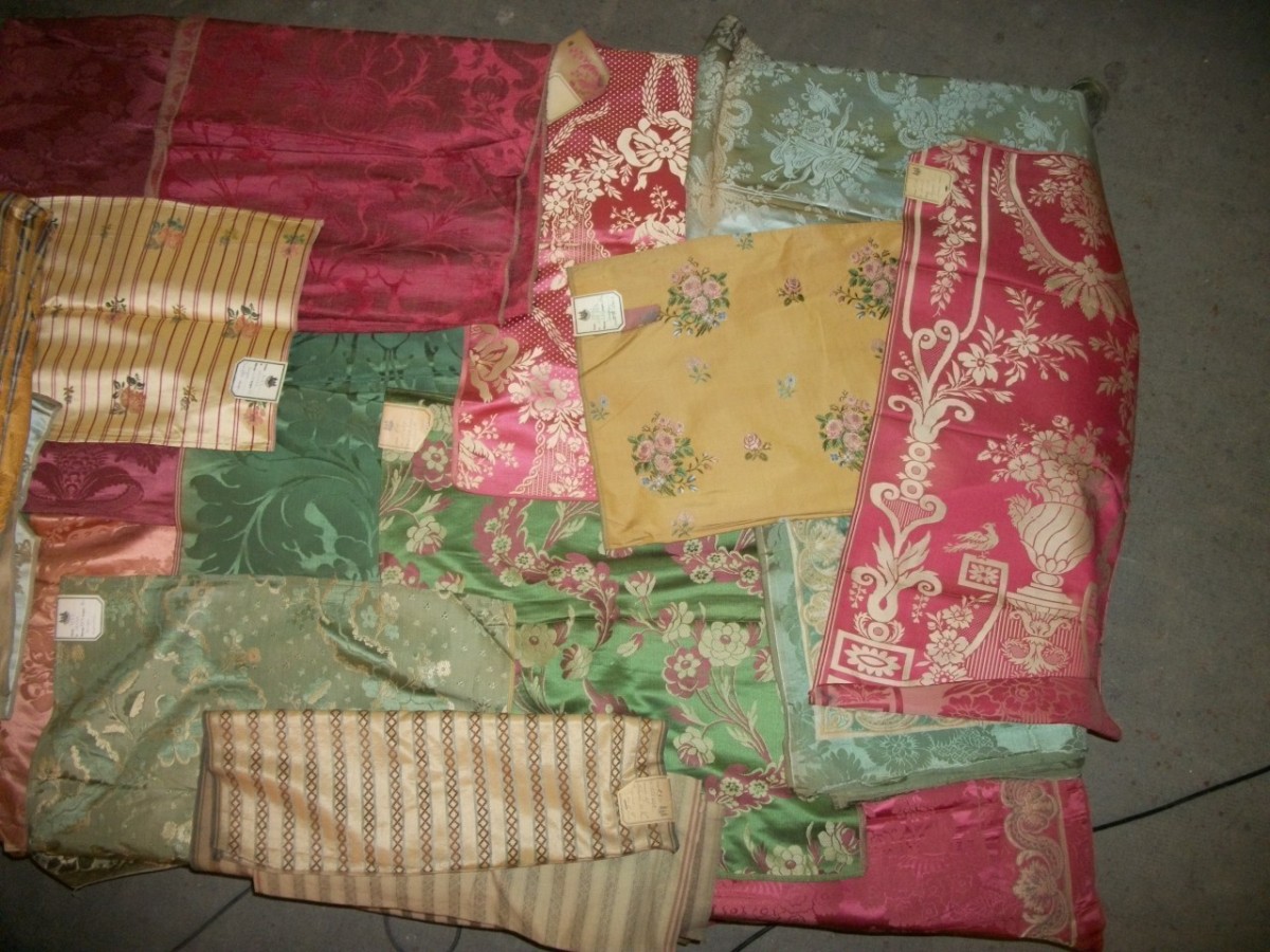 Réunion d'une QUINZAINE d'ÉCHANTILLONS de présentations de damas, lampas, brocatelle,...