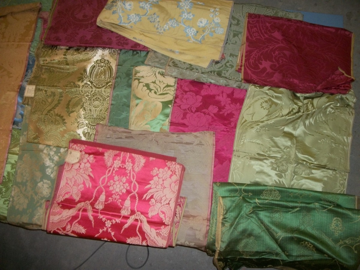 Réunion d'une QUINZAINE d'ÉCHANTILLONS de présentations de damas, lampas, brocatelle,...