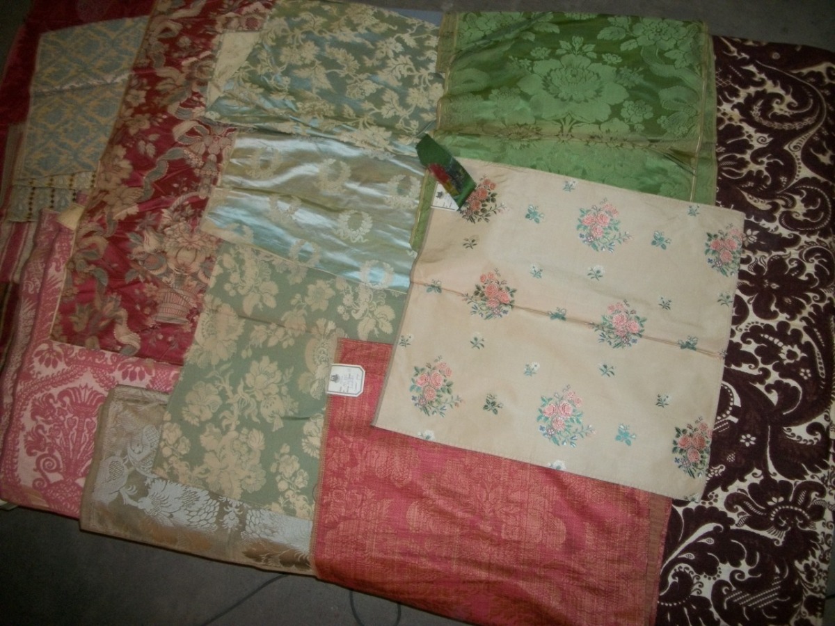 Réunion d'une QUINZAINE d'ÉCHANTILLONS de présentations de damas, lampas, brocatelle,...