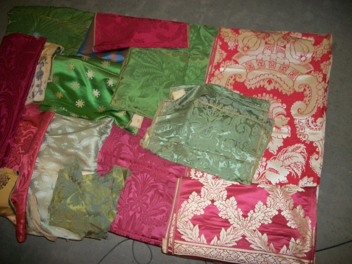 Réunion d'une QUINZAINE d'ÉCHANTILLONS de présentations de damas, lampas, brocatelle,...