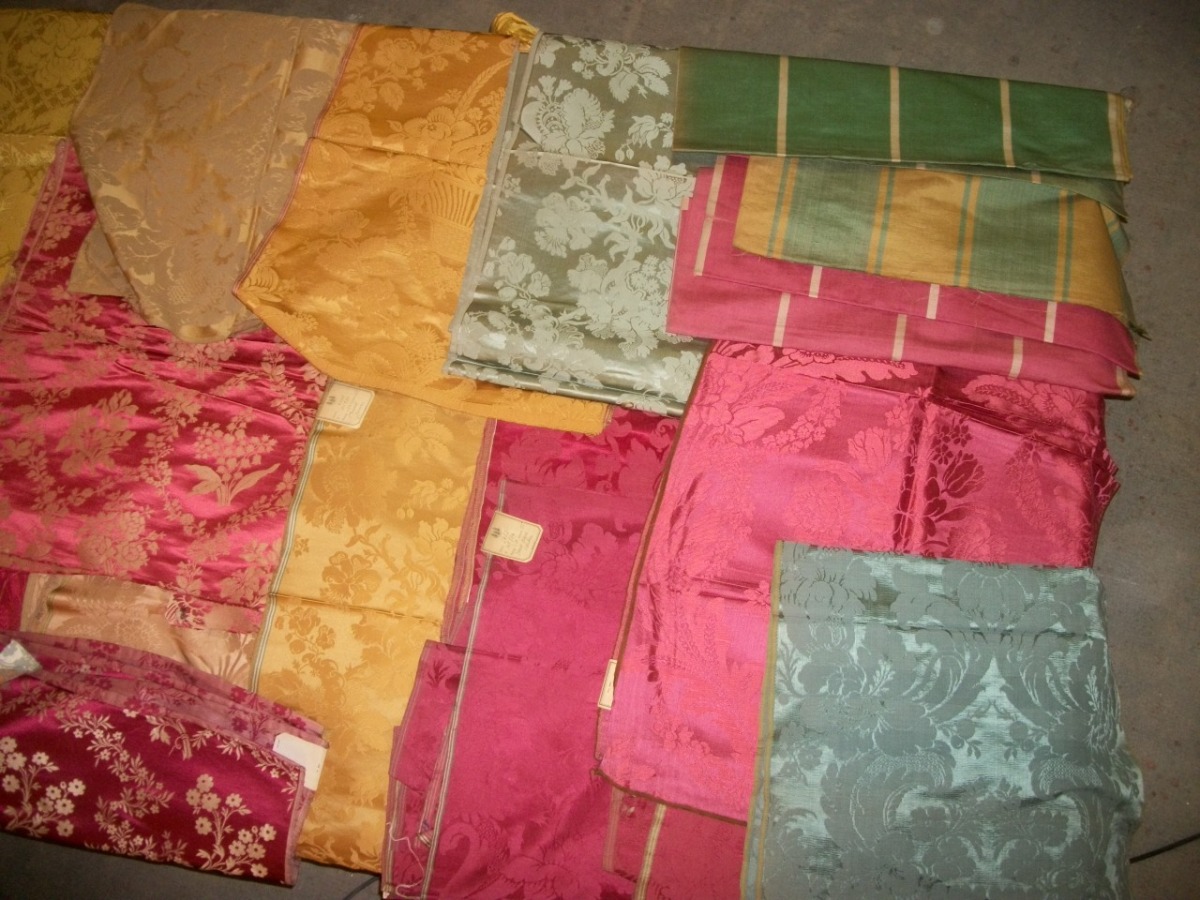 Réunion d'une QUINZAINE d'ÉCHANTILLONS de présentations de damas, lampas, brocatelle,...