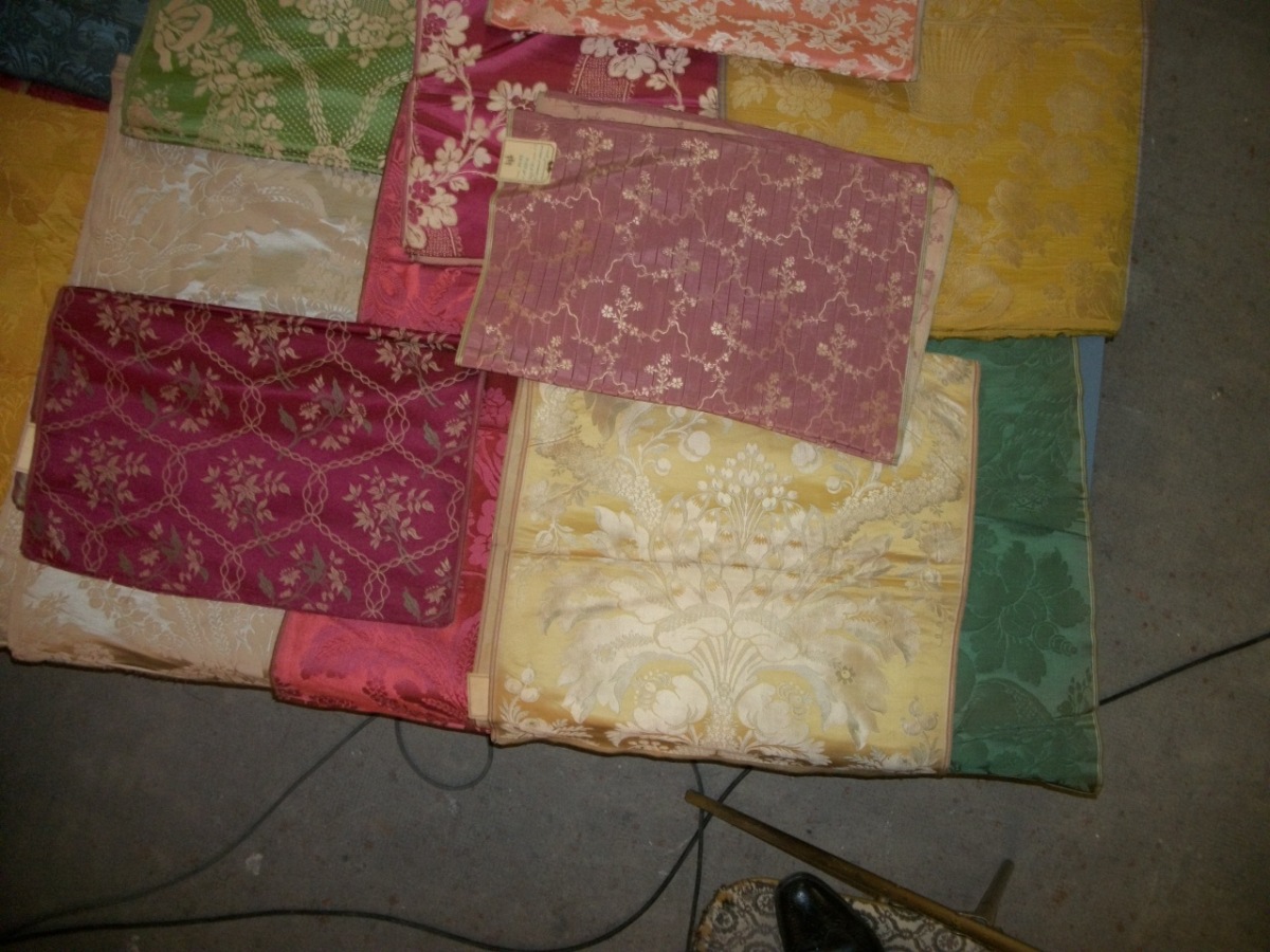 Réunion d'une QUINZAINE d'ÉCHANTILLONS de présentations de damas, lampas, brocatelle,...