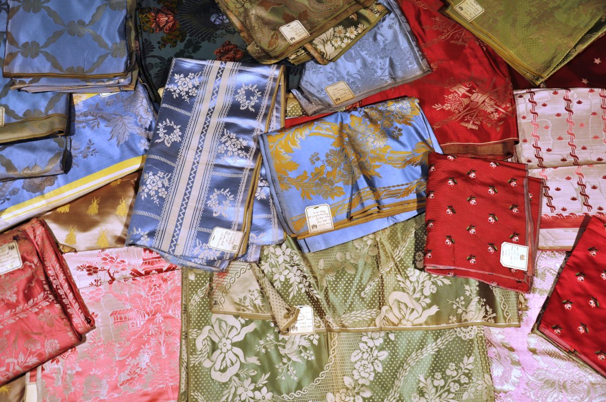 Réunion d'une QUINZAINE d'ÉCHANTILLONS de présentations de damas, lampas, brocatelle,...