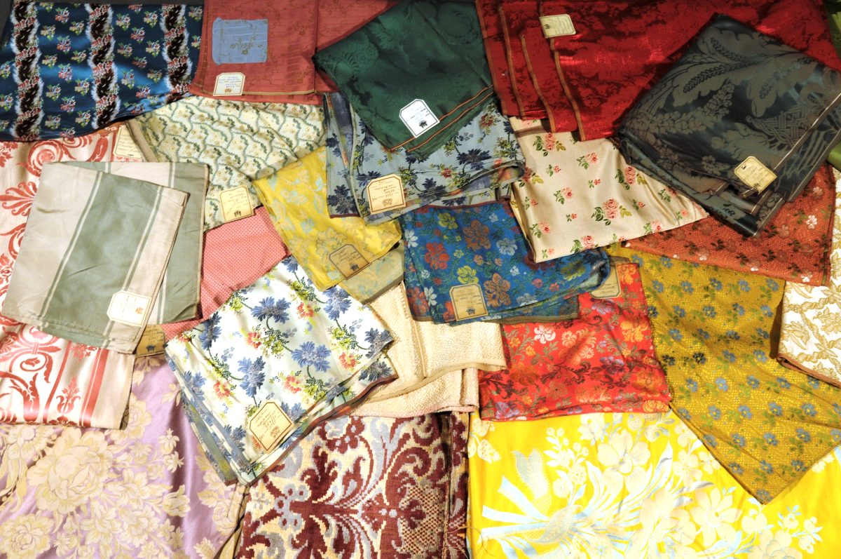 Réunion d'une QUINZAINE d'ÉCHANTILLONS de présentations de damas, lampas, brocatelle,...