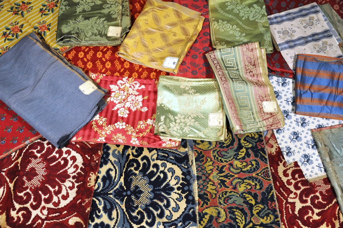 Réunion d'une QUINZAINE d'ÉCHANTILLONS de présentations de damas, lampas, brocatelle,...