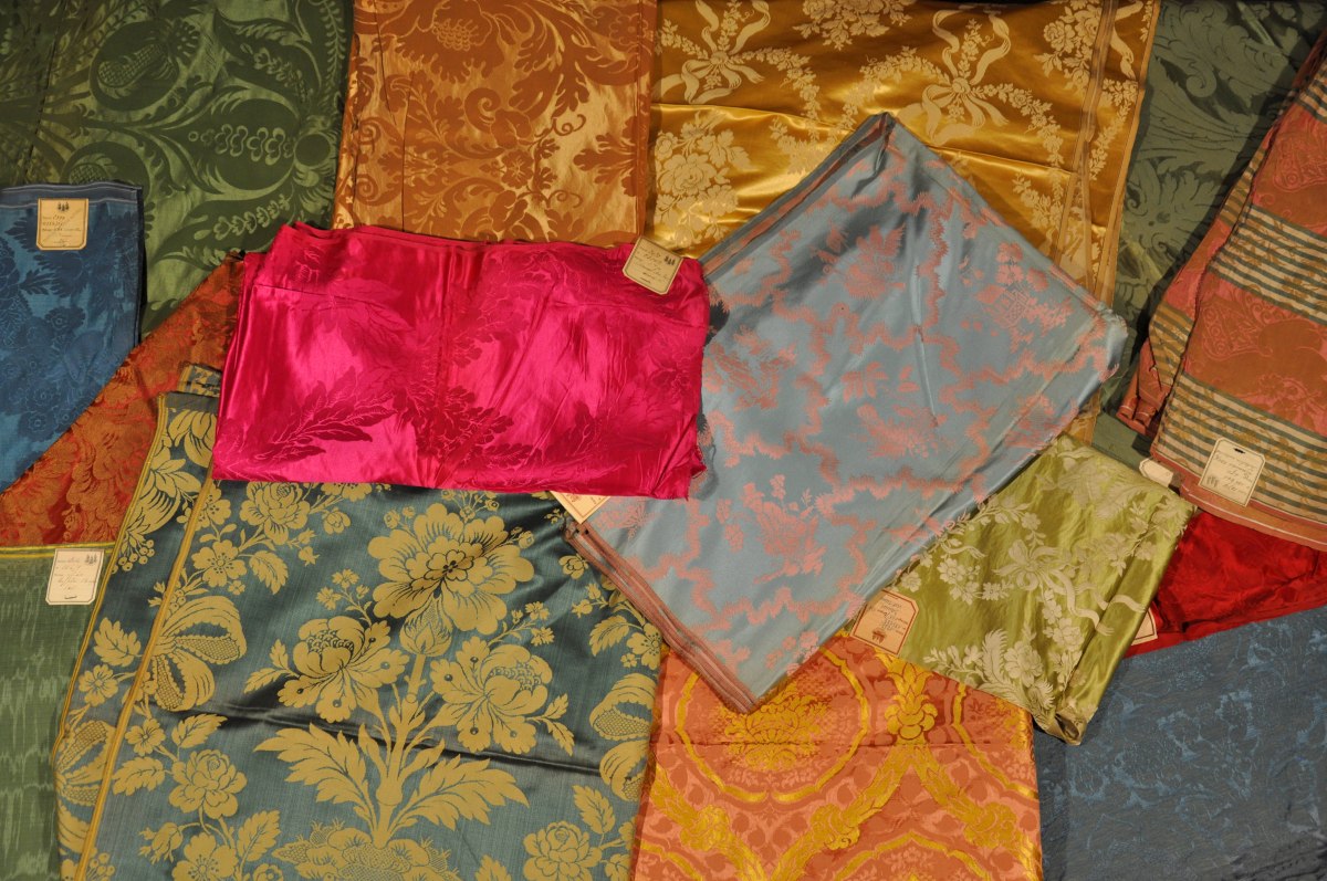 Réunion d'une QUINZAINE d'ÉCHANTILLONS de présentations de damas, lampas, brocatelle,...