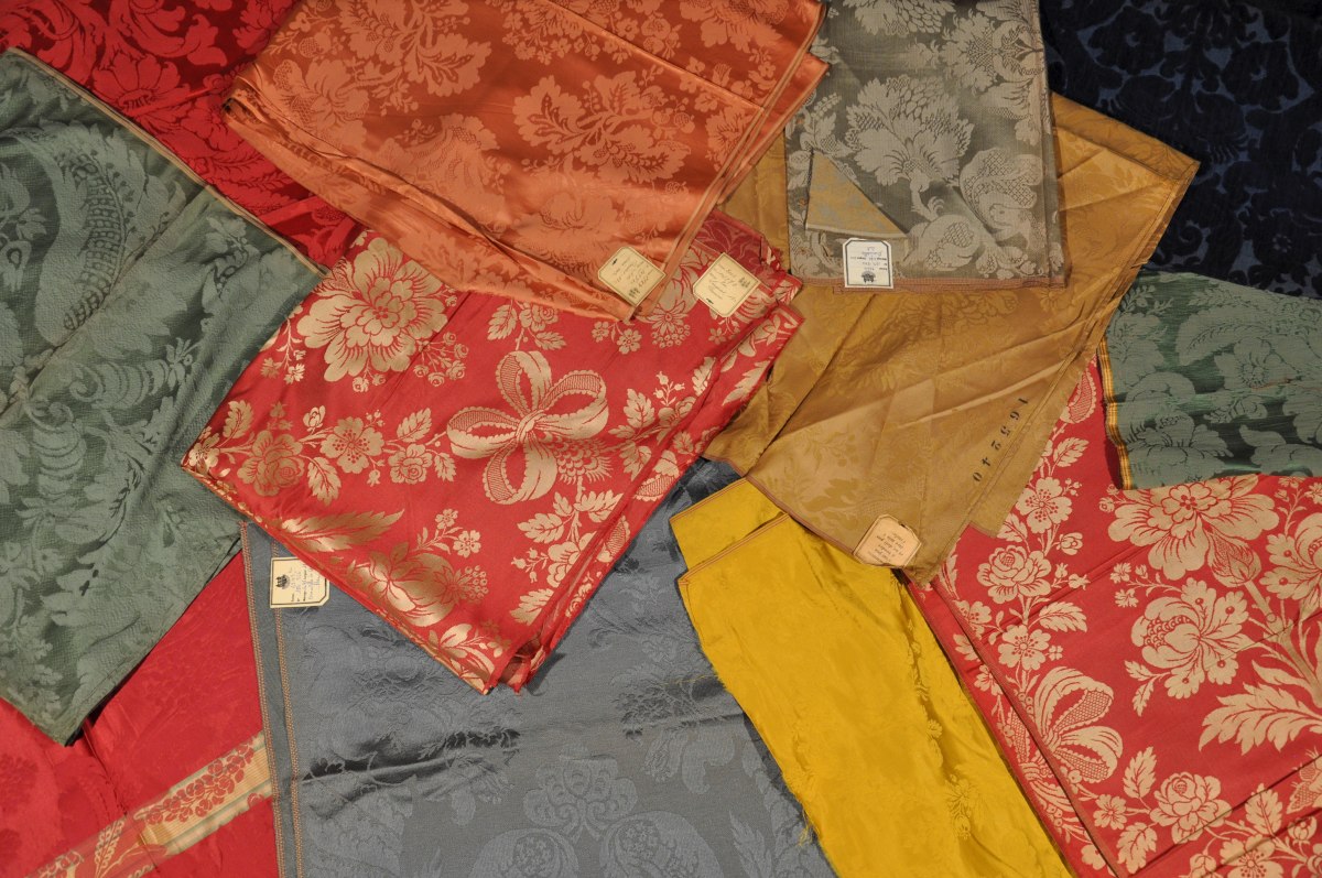 Réunion d'une QUINZAINE d'ÉCHANTILLONS de présentations de damas, lampas, brocatelle,...