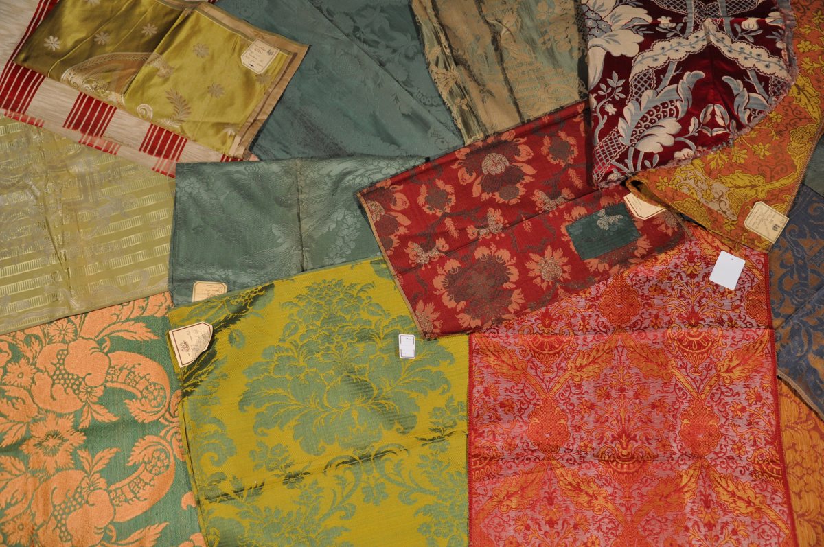 Réunion d'une QUINZAINE d'ÉCHANTILLONS de présentations de damas, lampas, brocatelle,...