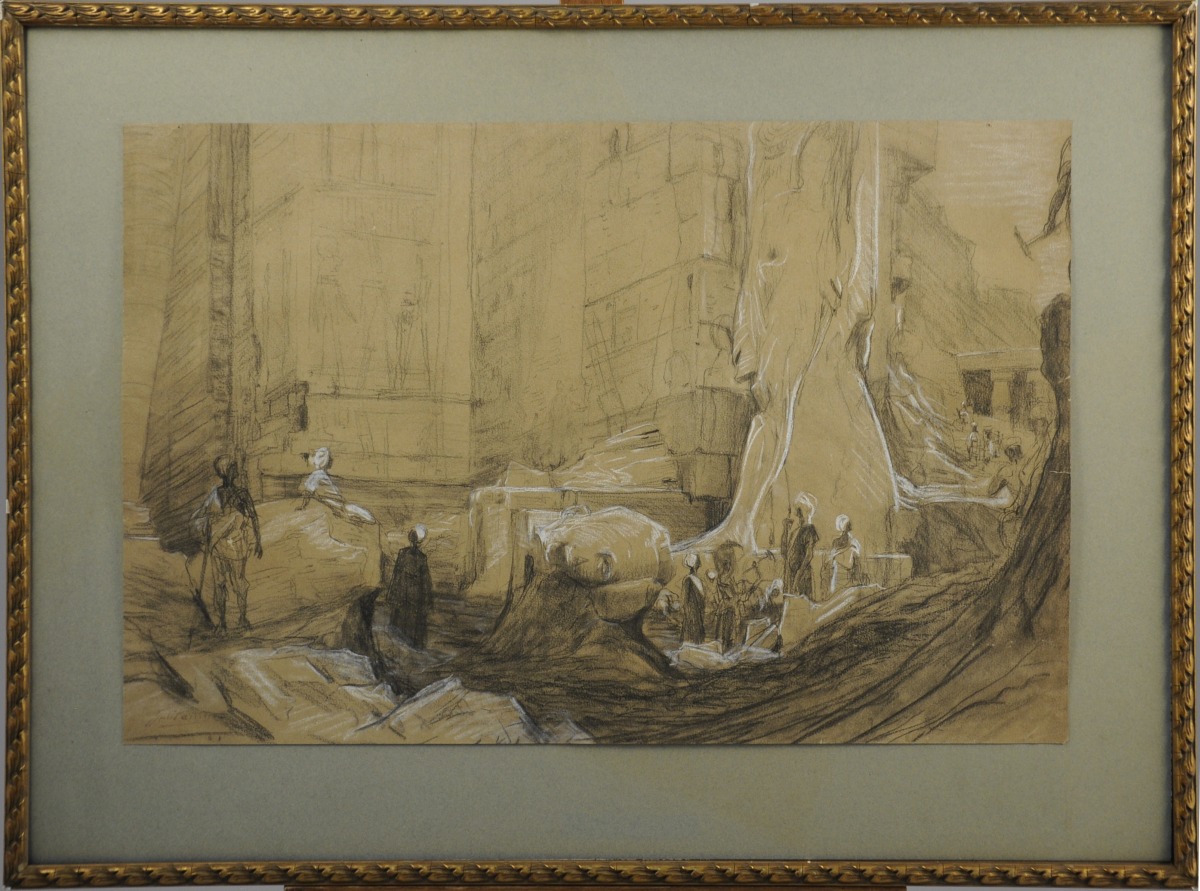 Égypte, étude pour les fouilles du temple de Médinet-Habou.