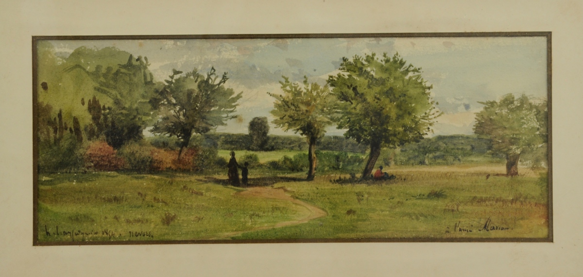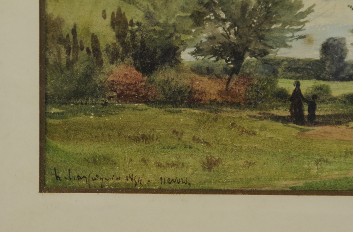 Signé h.harpignies, situé Nevers et daté 1854 en bas à gauche.