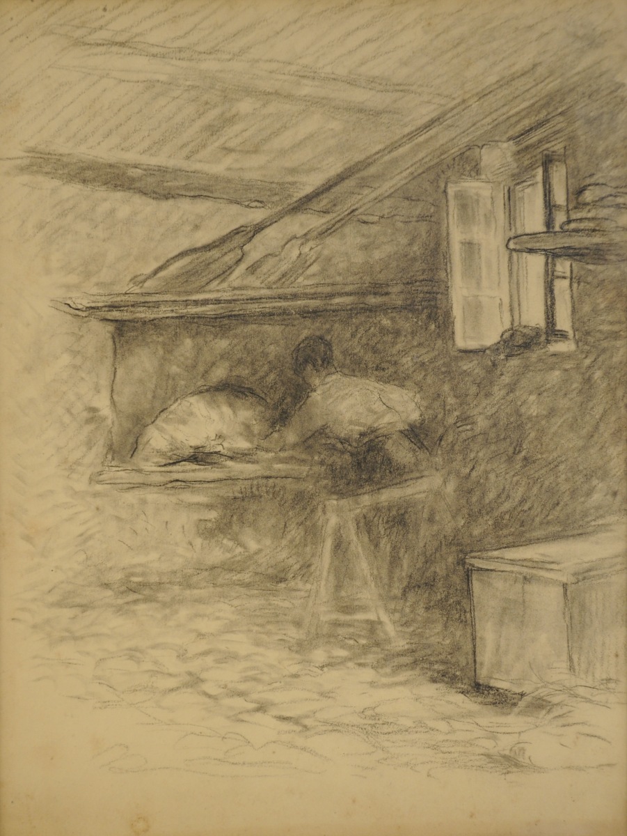 - Au four à pain. Fusain. 32 x 24,5 cm.