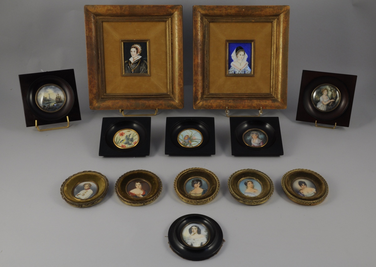 -QUATRE PORTRAITS DE FEMME et un du duc de Reichstadt. Divers artistes. 6 x 5 cm.