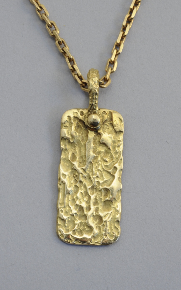 Yellow gold articulated NECKLACE with rectangular yellow gold PENDANT marked GAY Frères.