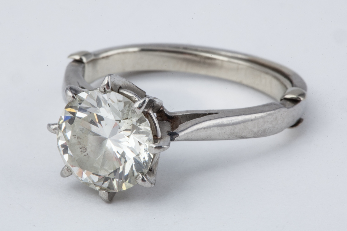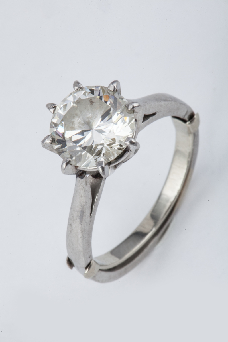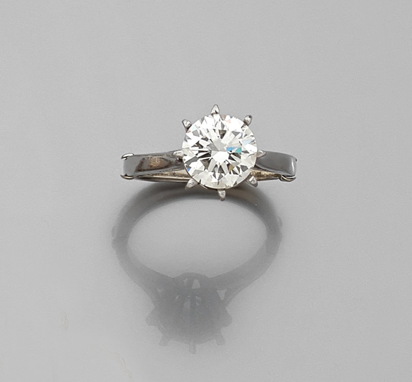 BAGUE en platine ornée d'un DIAMANT rond de taille brillant pesant : 2,56 ct.