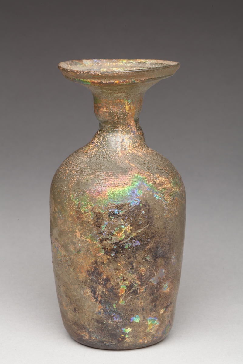 BOUTEILLE. Irisations arc-en-ciel.Ier siècle après J.-C.Haut. 13 cm.BOTTLE. 1st century...
