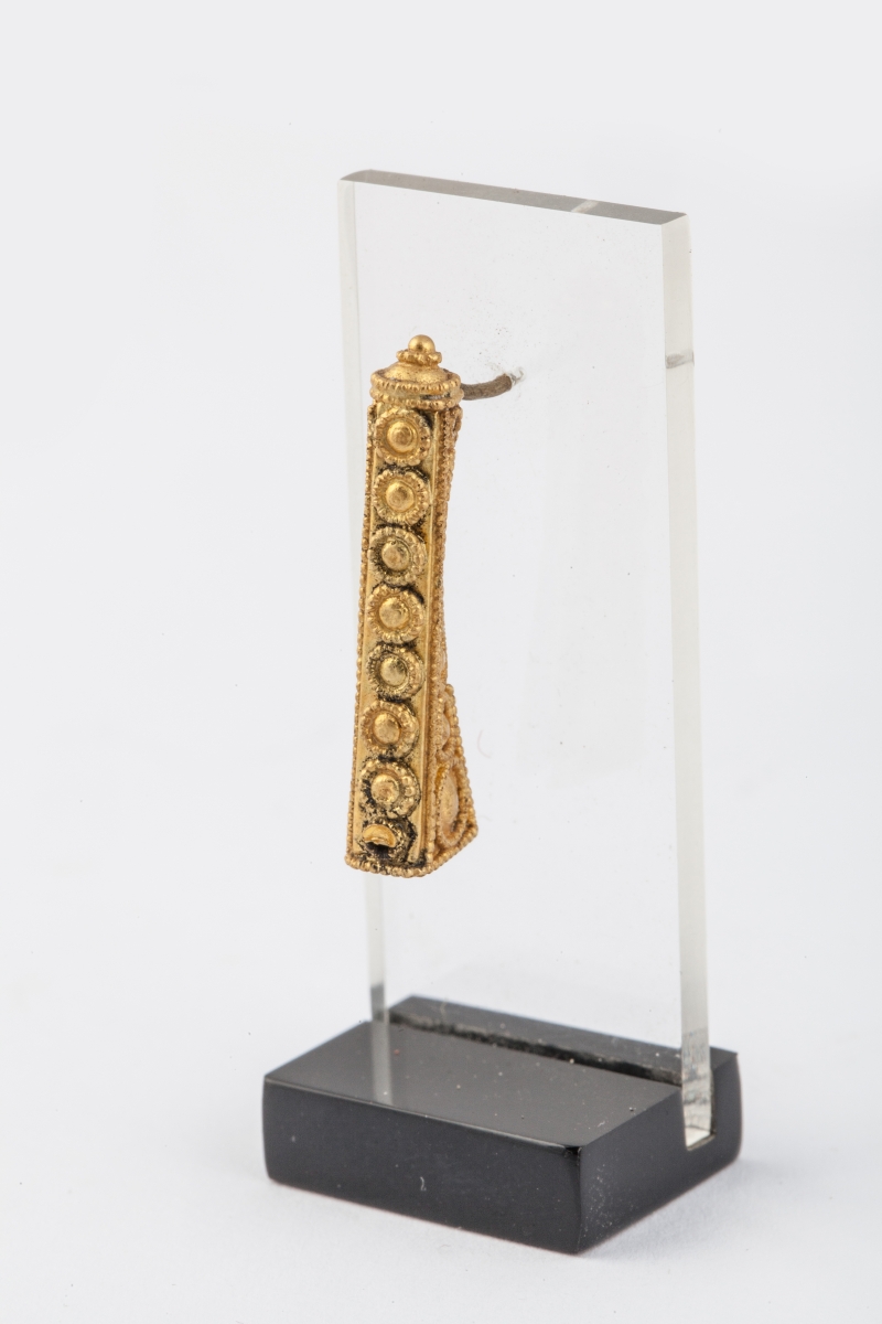 TUBE en or orné sur trois faces de cercles pointés.Époque...