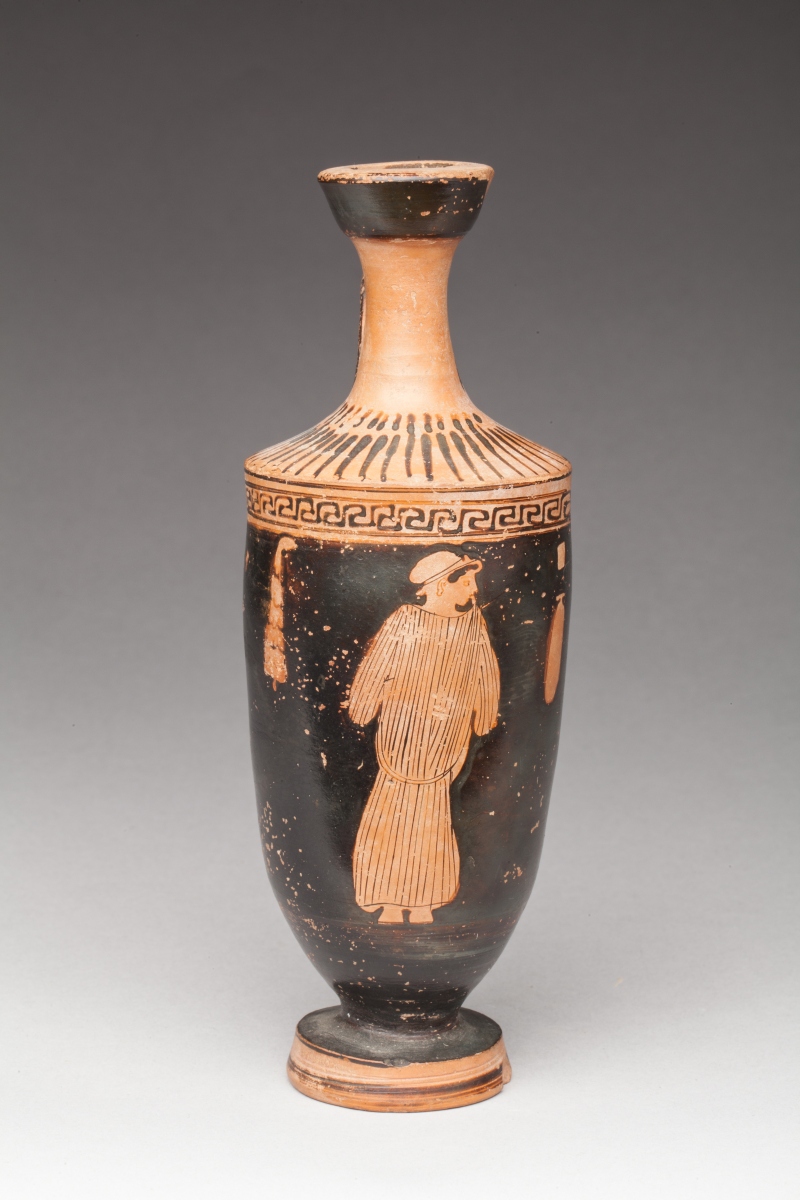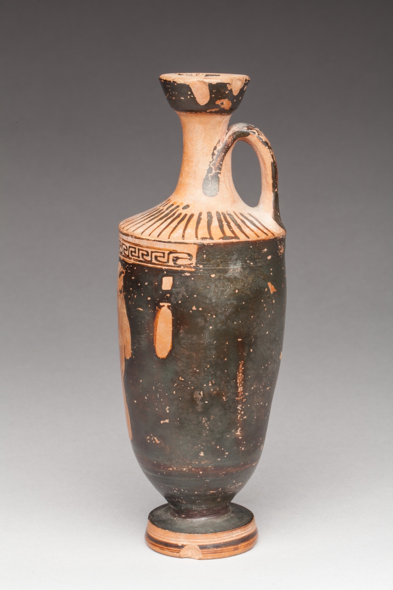 LEKYTHOS. Ceramic with a red figure. End of the 5th century B.C.