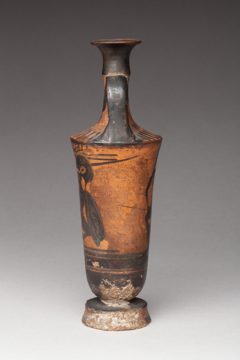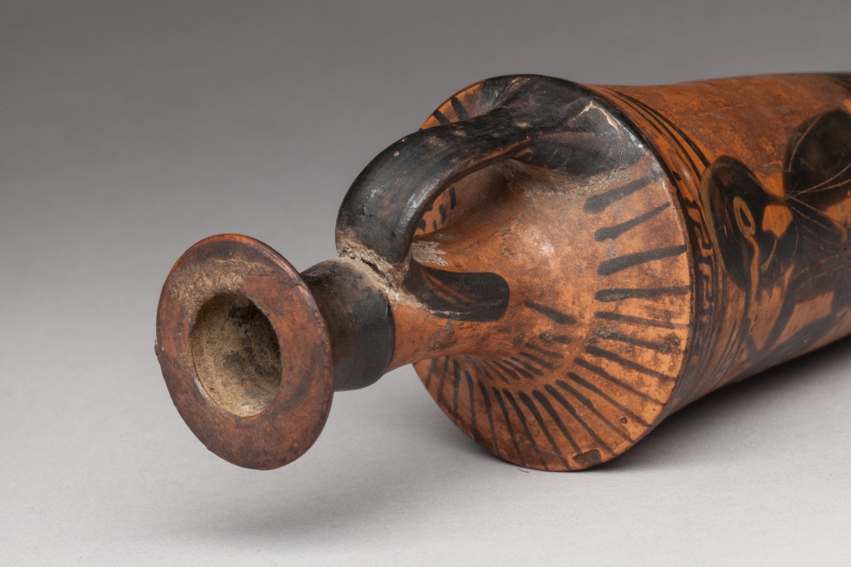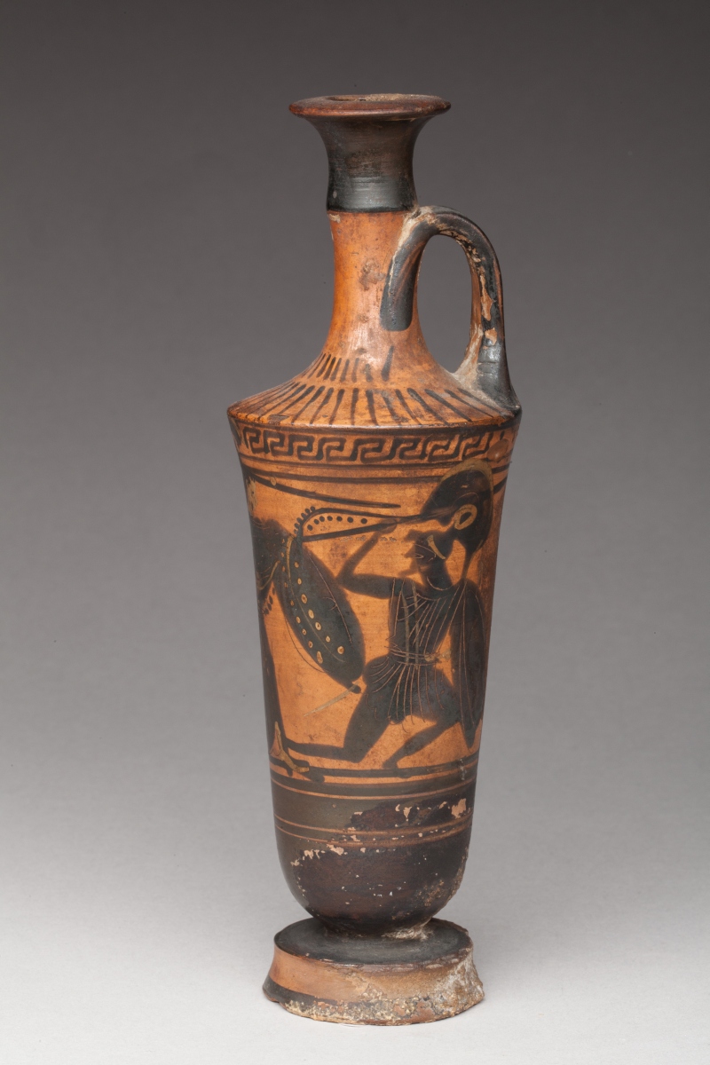 LEKYTHOS. Ceramic with a black figure. Circa 500 B.C.
