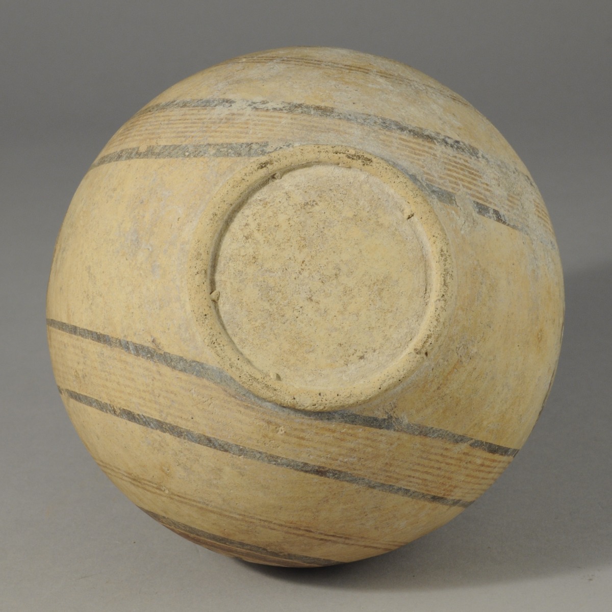 NOCHOE globulaire. Céramique sans engobe à décor géométrique peint de cercles concentriques et de médaillons.