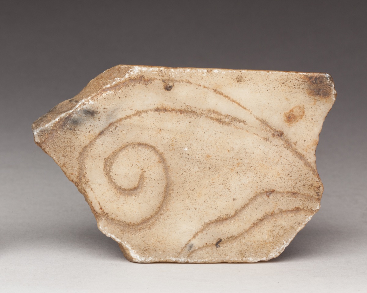 FRAGMENT of the base of a statue. Soapstone. 3rd century B.C.