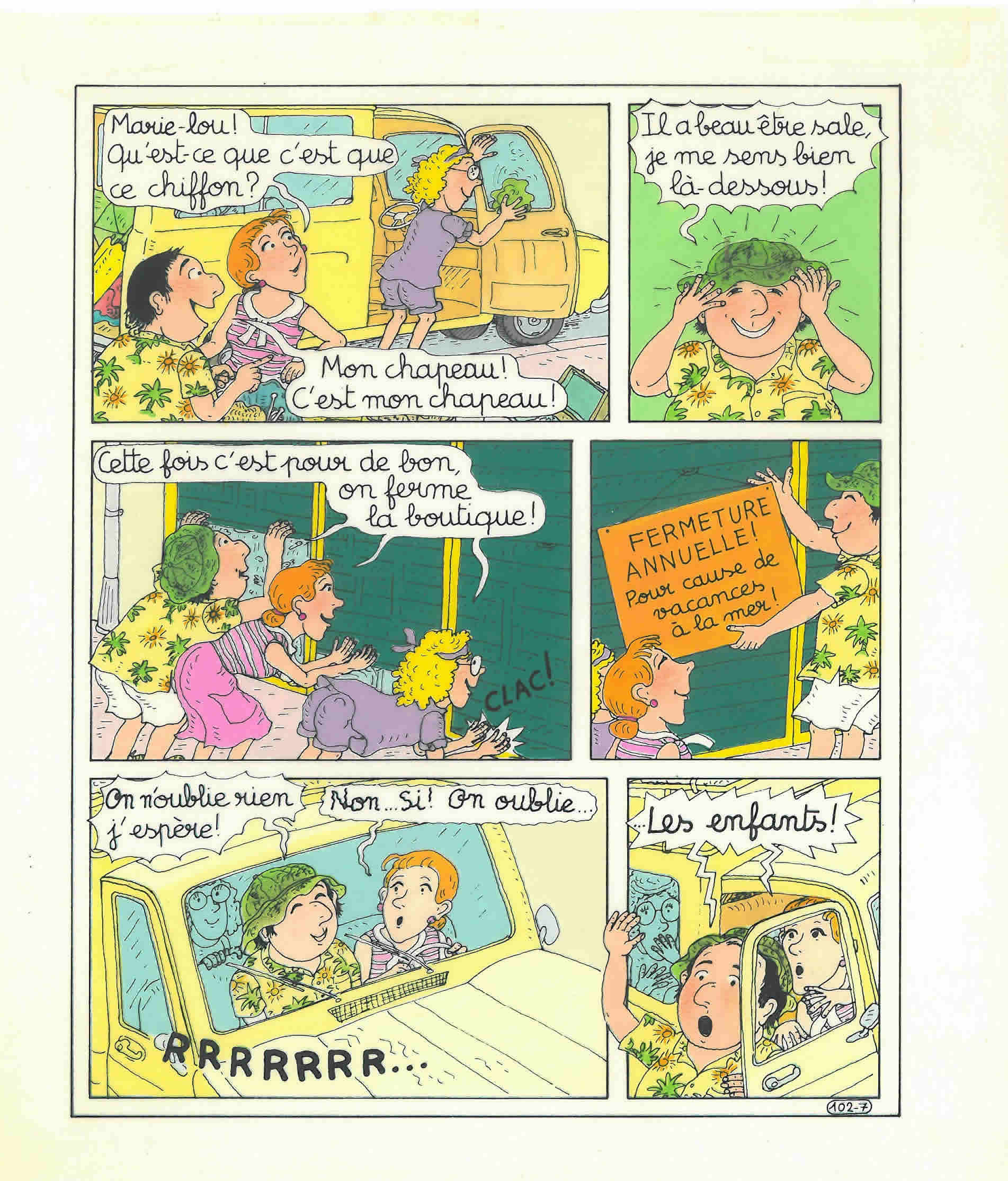 Planche n° 7 de l'histoire " Départ en vacances" dans le livre "Tom Tom et Nana" n° 5.